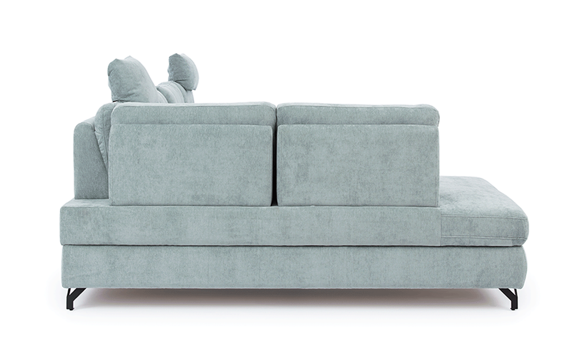 Ten elegancki narożnik został stworzony z myślą o osobach, które chcą urządzić swoje mieszkanie w sposób ładny i przemyślany. Szerokość 250 cm sprawia, że jest to doskonały narożnik do małego salonu, ponieważ świetnie wypełnia róg pokoju, nie zajmując przy tym zbyt dużo miejsca. Konstrukcja w kształcie litery L oraz tylko jeden smukły podłokietnik sprawiają, że strefa wypoczynku wygląda bardzo przestronnie i nie przytłacza pomieszczenia.