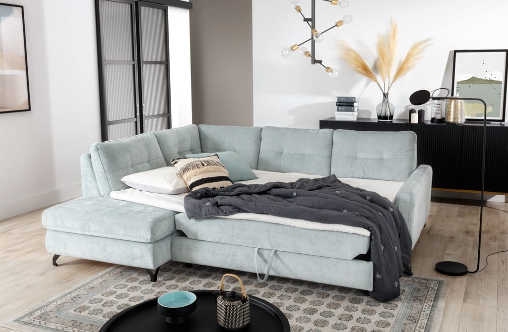 Narożnik z funkcją spania – nowoczesny narożnik z pojemnikiem
