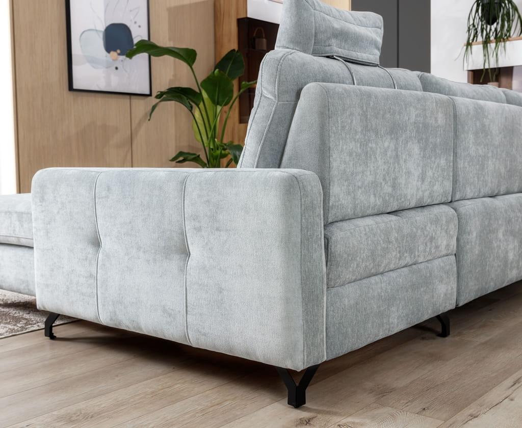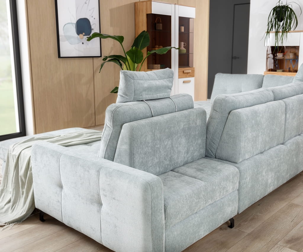 Jasny, szary odcień tkaniny to strzał w dziesiątkę – pasuje do każdych ścian i sprawia, że pokój wydaje się większy. Ten nowoczesny narożnik wyróżnia się prostą formą, która sprawia, że wnętrze wygląda na bardziej uporządkowane i dopracowane. Wybierając ten model, zyskujesz narożnik, który nie tylko cieszy oko, ale przede wszystkim zapewnia domownikom bardzo przytulne miejsce do wspólnego spędzania czasu.