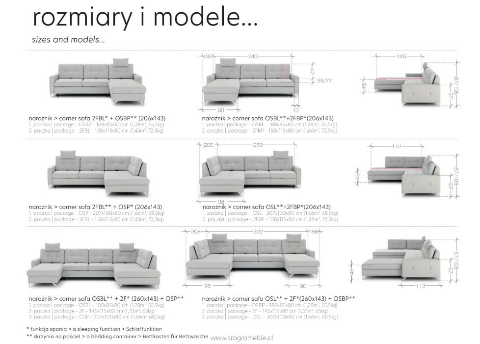 - Powierzchnia spania: 206x143 cm