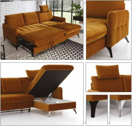 Narożnik z funkcją spania – nowoczesny narożnik z pojemnikiem na pościel