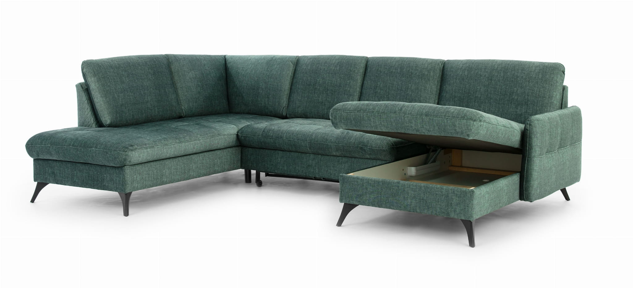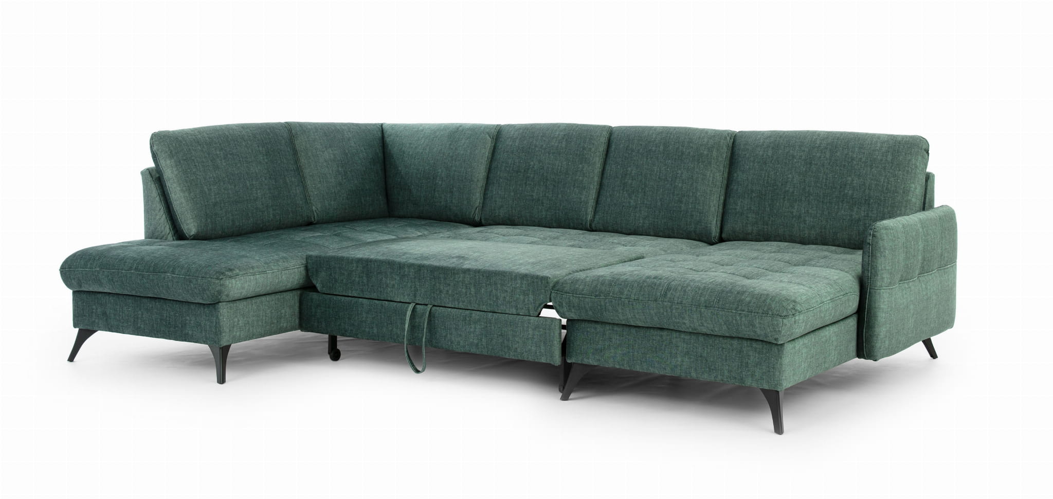 Narożnik z funkcją spania – zielony narożnik z pojemnikiem na pościel