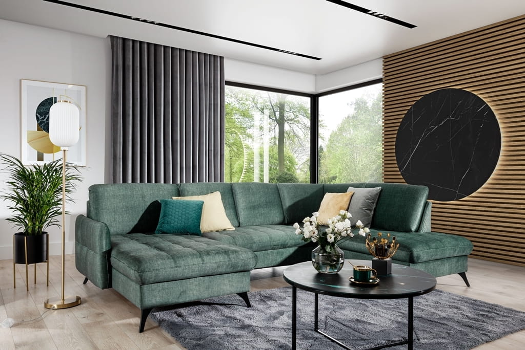 Zielony narożnik 330 cm – duży narożnik do dużego salonu w kształcie U