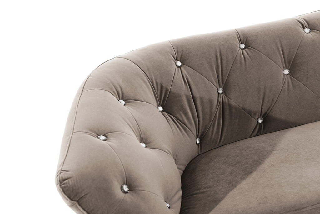Wybór dwuosobowej sofy WENECJA 190 cm to sposób na wprowadzenie wyrafinowanego stylu glamour nawet do mniejszego salonu. Najbardziej rozpoznawalnym elementem bryły są głębokie pikowania na oparciach, które nadają meblowi unikalny, luksusowy styl i przyciągają wzrok każdego gościa.