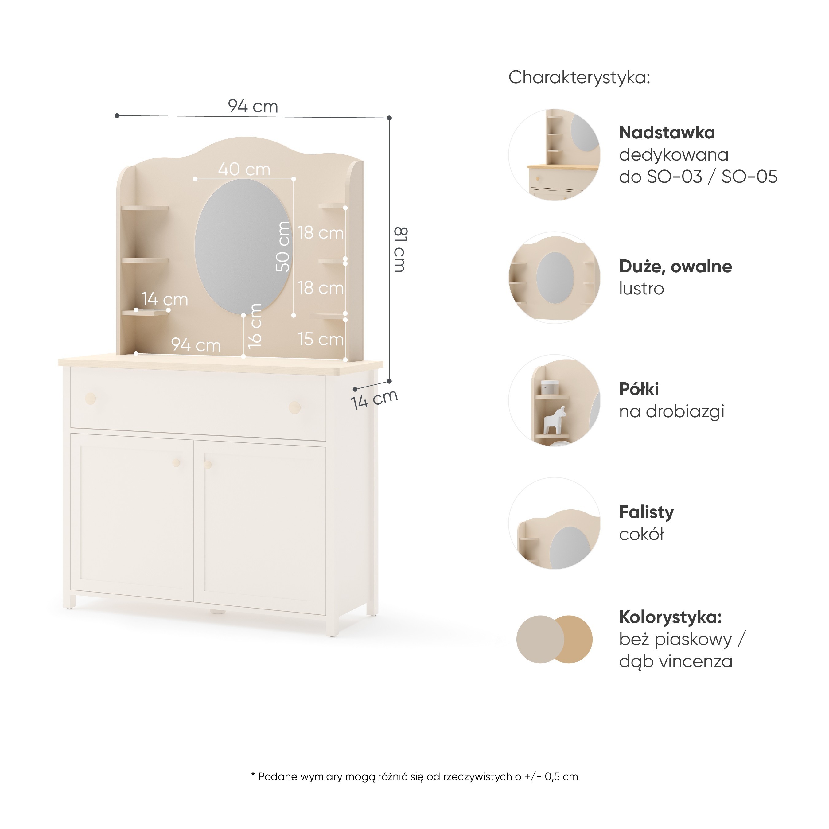 Toaletka STORY SO-06 Nadstawka Do Biurka Lub Komody Szerokość 94 cm Beż