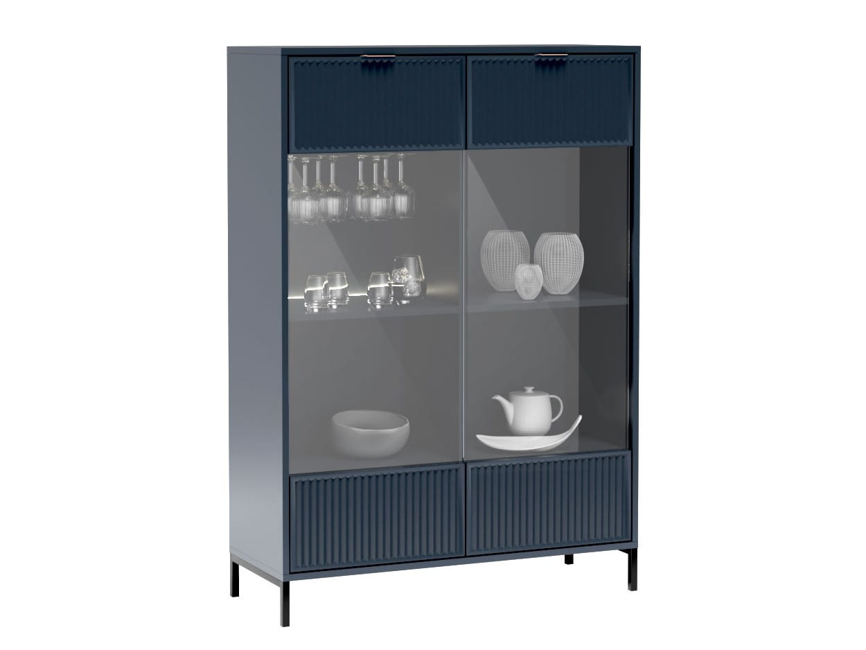 Witryna STYLE 8 Granatowa Ryflowany Front Szerokość 105 cm Do Salonu