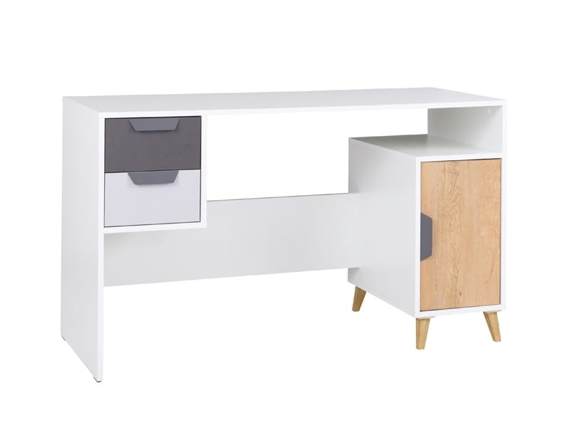 Biurko JOCKER szerokość 130 cm biały / grafit / szary / dąb lefkas 13