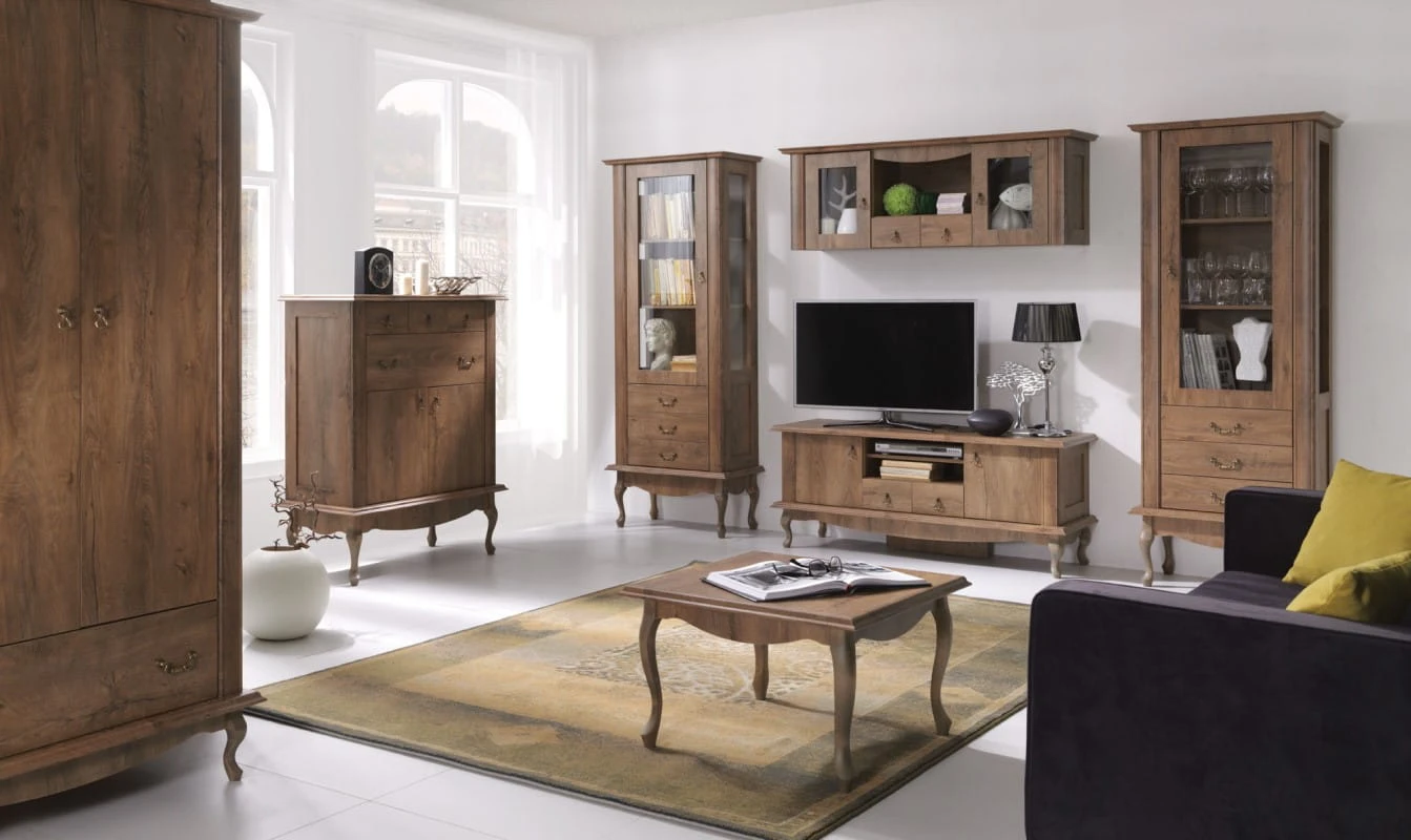 Inspirowany stylem prowansalskim i rustykalnym, system mebli pokojowych Diana kojarzy się z urokliwą Prowansją i pełnym słońca klimatem. Łagodne linie, klasyczne zdobienie w postaci frezowanych prostych listew i misternych uchwytów, stylizowane nóżki z litego drewna to cechy charakterystyczne dla tej kolekcji. Meble Diana utrzymane w stonowanej naturalnej kolorystyce dekoru drewna są pełne niewymuszonej elegancji i ciepłego uroku. Jeżeli marzysz o przytulnym i gościnnym wnętrzu, w którym dominuje naturalność i spokój kolekcja mebli Diana będzie świetnym wyborem.