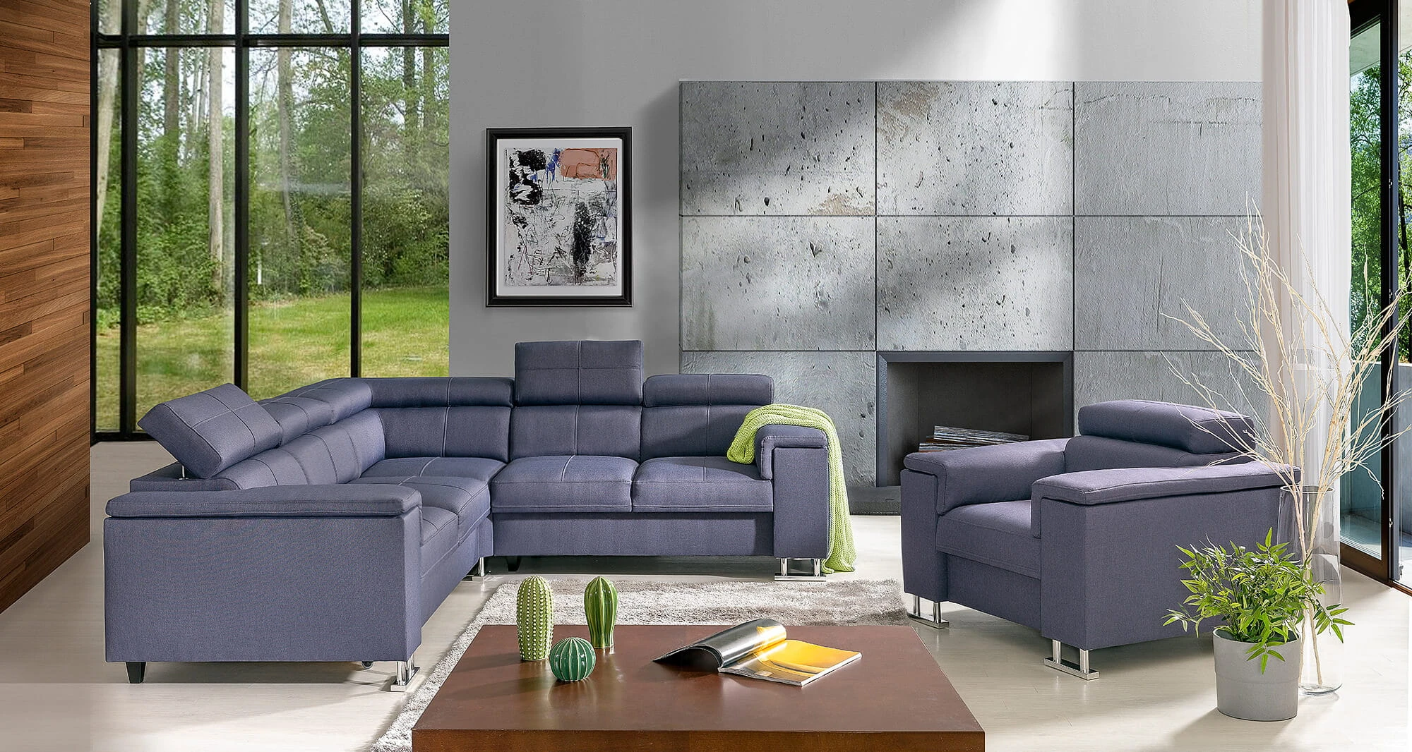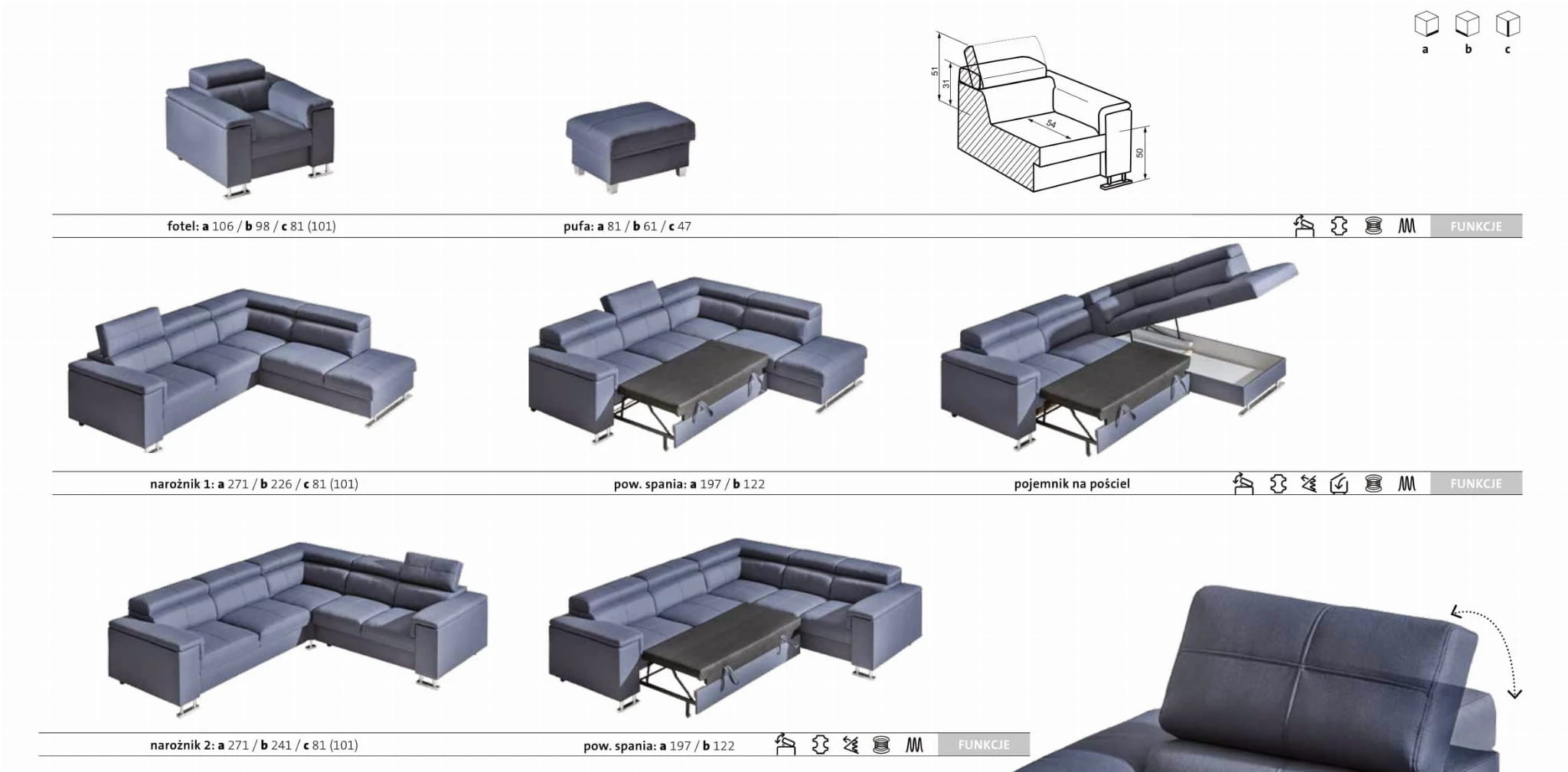 Meble zostały wyposażone w ruchome zagłówki, każdy zagłówek można niezależnie złożyć lub rozłożyć.