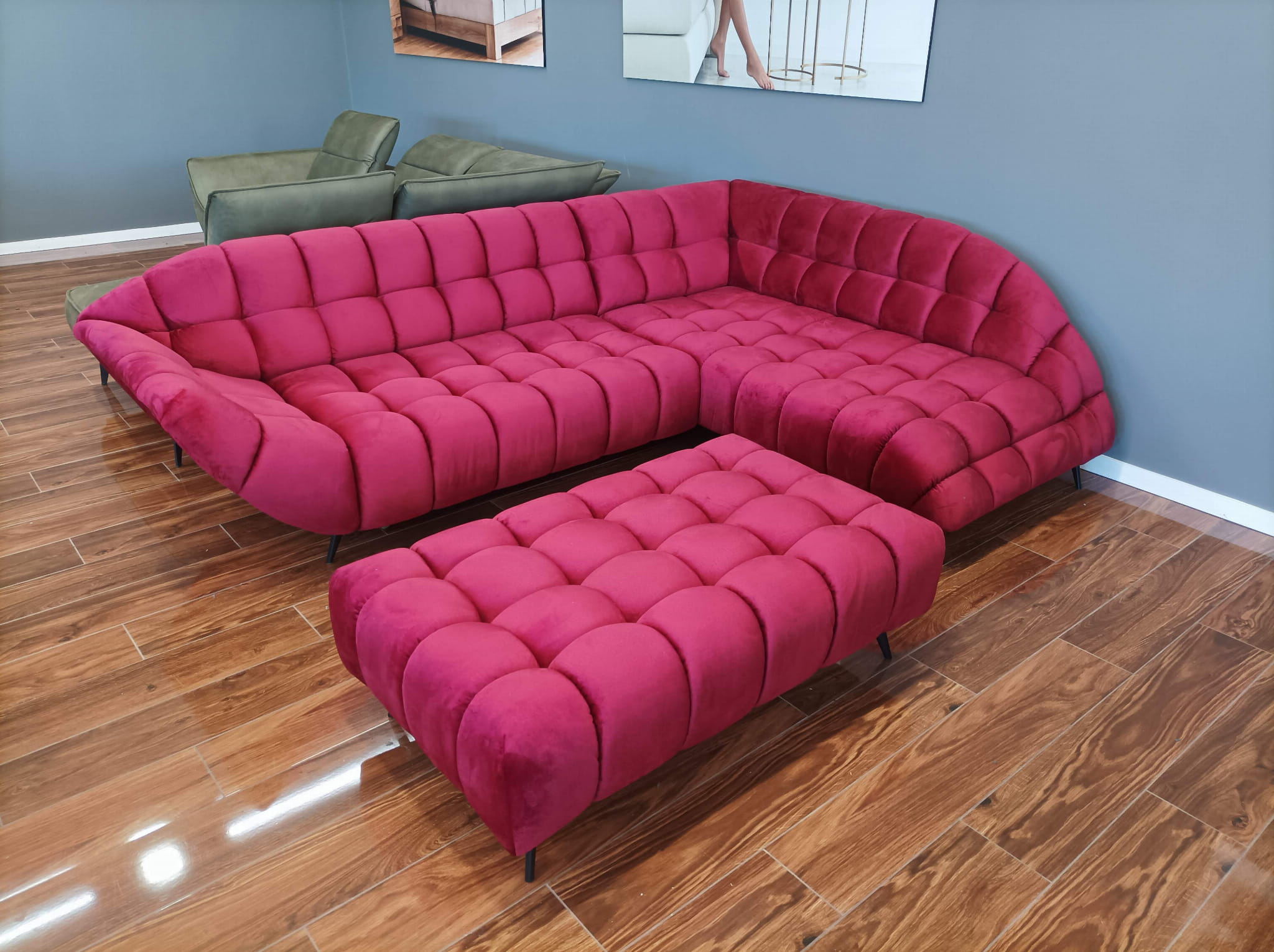 Pufa GAPPA to znacznie więcej niż tylko dodatek – to elegancki mebel tapicerowany, który natychmiast staje się wyjątkową ozdobą każdego nowoczesnego salonu. Zaprojektowana z myślą o spójności aranżacyjnej, w zestawie z narożnikiem lub sofą z tej samej kolekcji tworzy harmonijną i przytulną atmosferę, podkreślając wysoką klasę całego zestawu wypoczynkowego. Jej design zapewnia jej uniwersalność, dzięki czemu z łatwością wpasuje się w niemal każdą estetykę wnętrza.