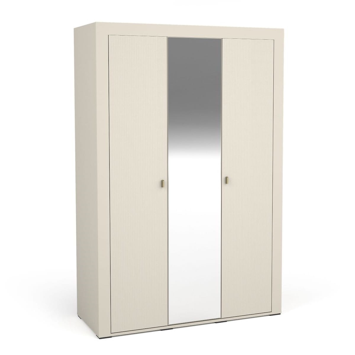 Trzydrzwiowa kaszmirowa szafa pozwala na uporządkowanie rzeczy i drobiazgów niezbędnych w każdym domu. W środku znajdują się półki oraz drążek na wieszaki. Szafa posiada lustrzane drzwi, złote uchwyty. Jej elegancki i nowoczesny design oraz funkcjonalność idealnie uzupełni wnętrze sypialni, czy też pokoju dziecięcego.