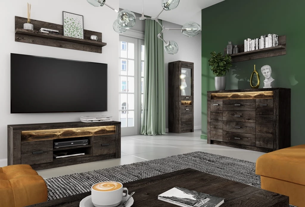 Nowoczesny styl i solidne wykończenie. Charakterystyczne drewniane elementy oraz opcja oświetlenia LED.