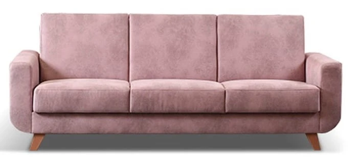 Sofa w stylu skandynawskim na masywnej drewnianej nodze, szeroka kolorystyka nóg do wyboru.