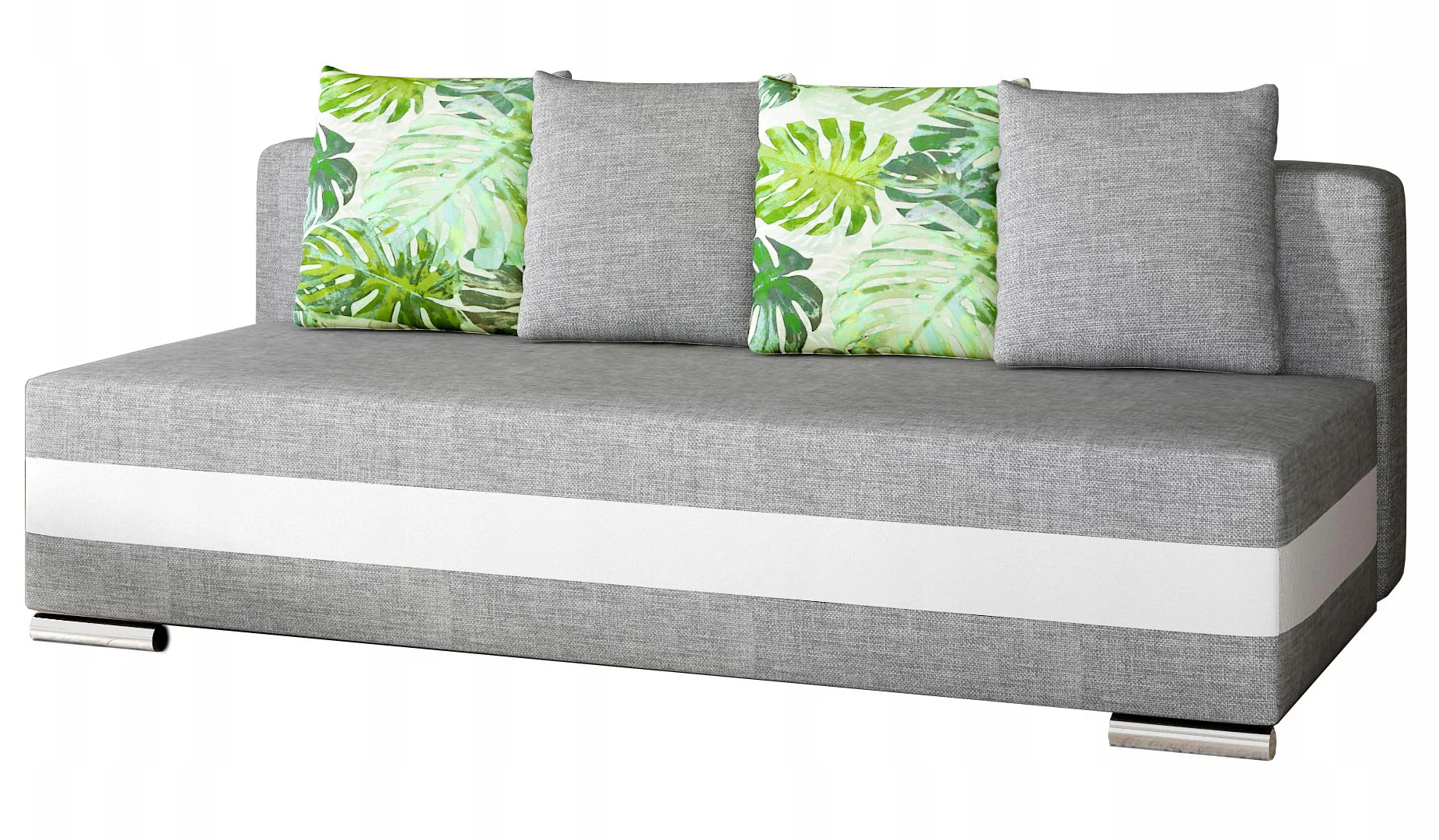 zestaw poduszek: dwie w kolorze tapicerki, dwie w kontrastujących wzorach i kolorach