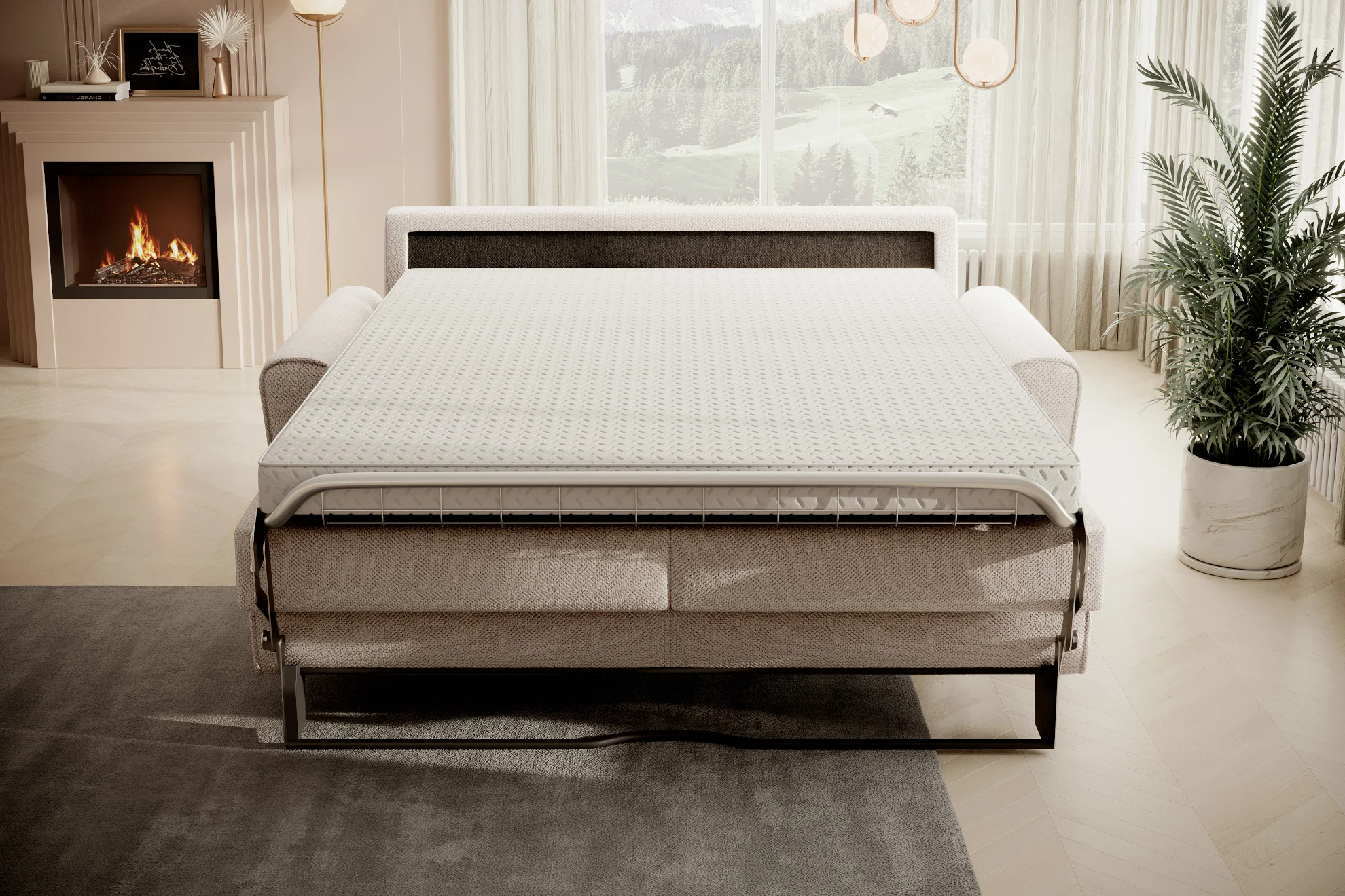Zastosowano w niej włoski system rozkładania pozwalający w szybki sposób zmienić ją w wygodne łóżko o powierzchni spania 160 x 190 cm.