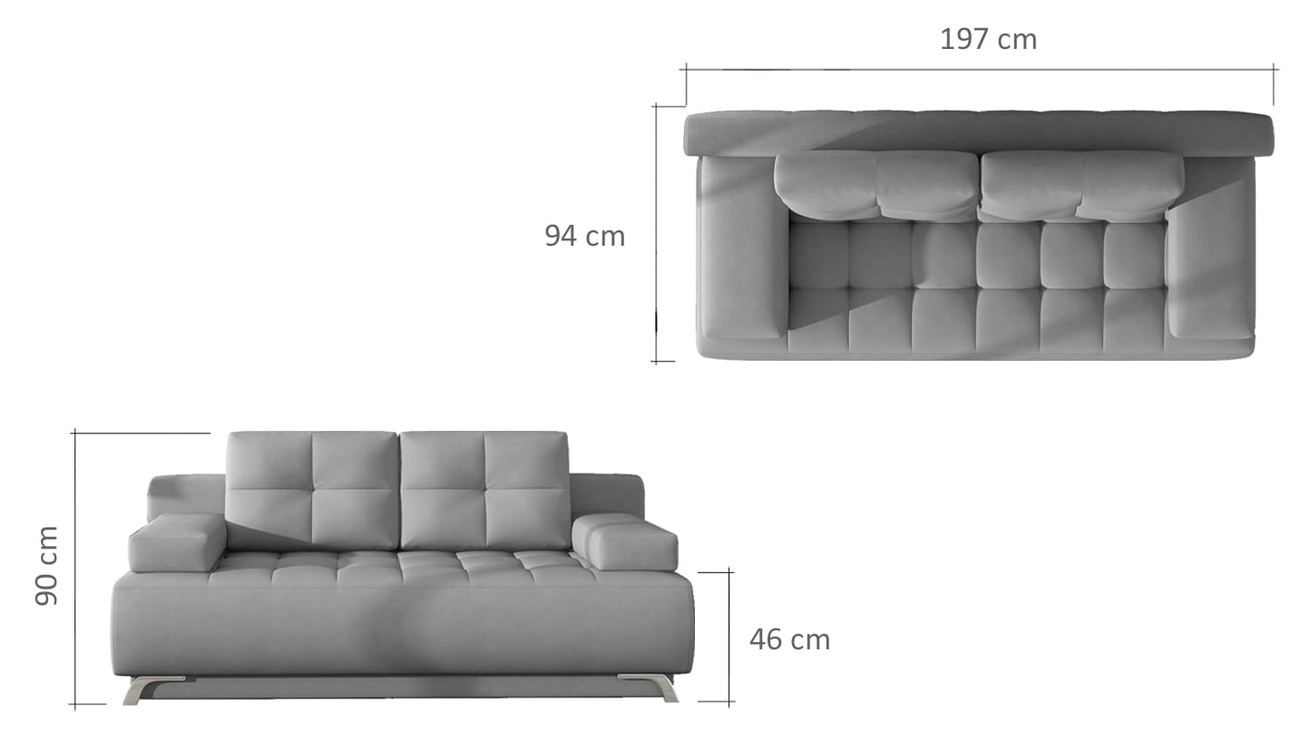 Cała powierzchnia siedziska jak i oparcia jest wykonana na sprężynach bonell co zapewni wygodny sen na całej powierzchni spania o wymiarach 144 x 196 cm