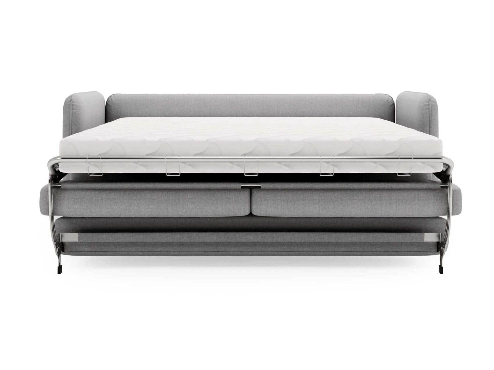 Sofa SKY II jest wyposażona w innowacyjny stelaż włoskiego pochodzenia, który umożliwia rozkładanie jej za pomocą zaledwie jednego pociągnięcia. To sprawia, że zmiana z sofy w łóżko staje się niezwykle łatwa i nie wymaga żadnych kompromisów.