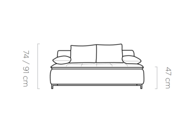 Dzięki obszernemu pojemnikowi na pościel, sofa SWEET pozwala na łatwe przechowywanie kompletu pościeli, co jest szczególnie przydatne w mniejszych przestrzeniach. Dodatkowym atutem jest możliwość wyboru rodzaju i koloru tkaniny z bogatej palety wzornika, co pozwala dopasować sofę do indywidualnych upodobań i stylu wnętrza.