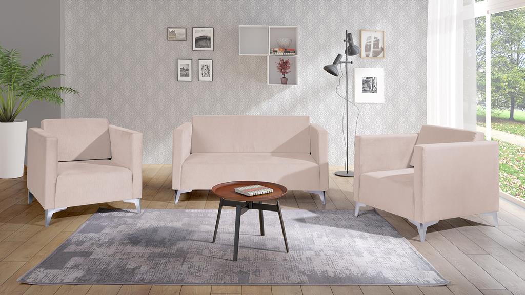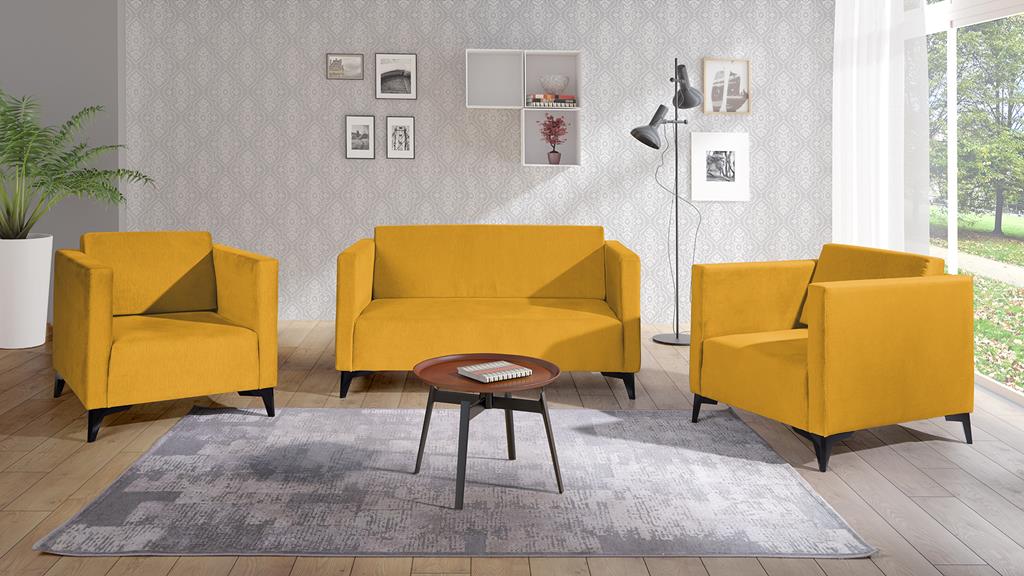 Wspólnie z sofą trzyosobową i fotelem, kanapa Szafir tworzy przyjazny zestaw do odpoczynku w: domu, lobby hotelowym, firmowym holu.