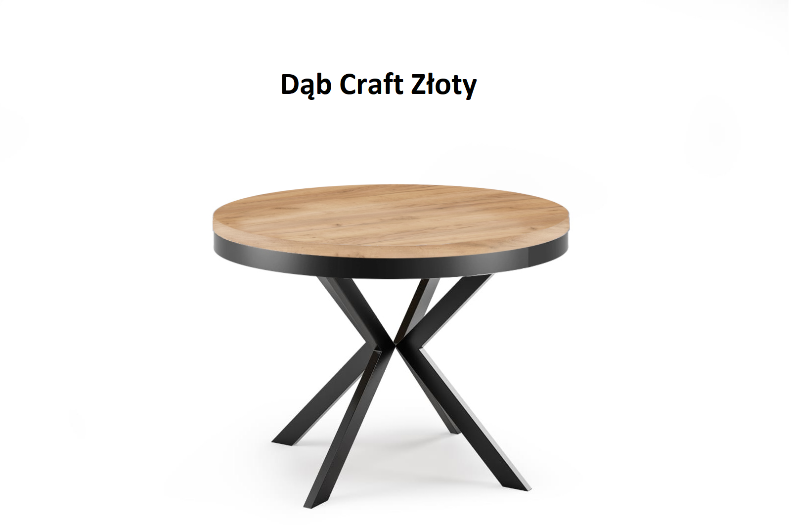 Stół EDDER 100 - 176 z Obręczą Okrągły Rozkładany Blat Dąb Craft Złoty Nogi Czarne Loft