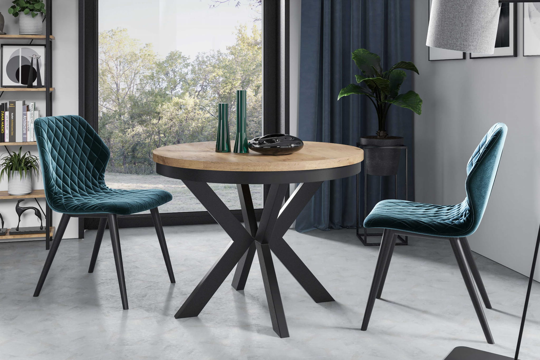 Metalowe nogi sprawiają wrażenie, że stół wygląda na bardzo dostojny, a całemu wnętrzu nadają ekskluzywnego charakteru. Dodatkowo ta solidna konstrukcja pomalowana została metodą proszkową, dzięki czemu jest odporna na wszelkie uszkodzenia, w tym odpryski, które na czarnej powierzchni byłyby od razu widoczne.