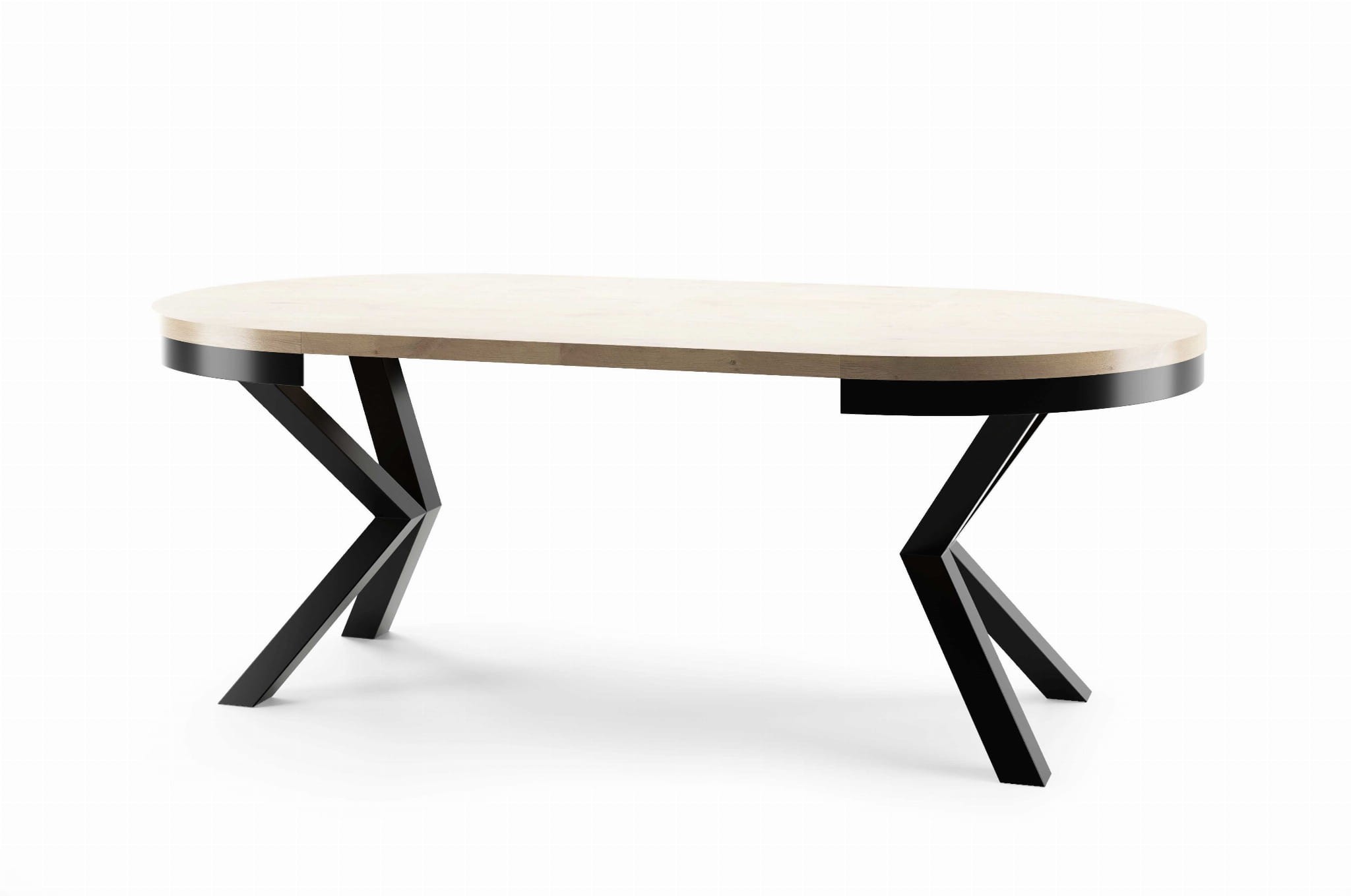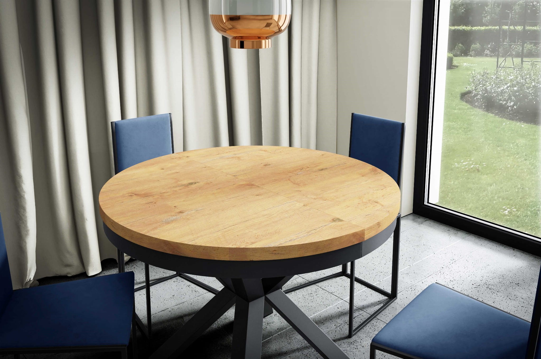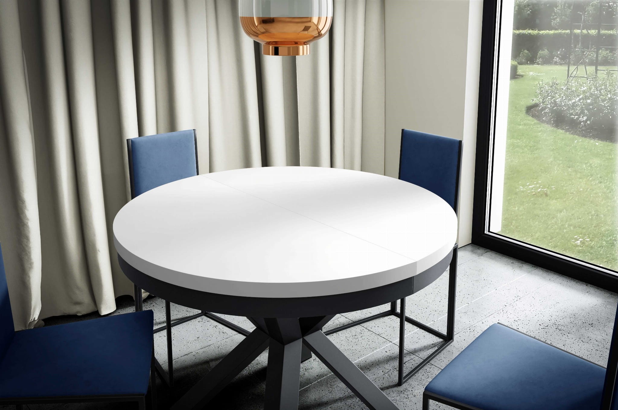 Stół NARWIK 100 - 176 Okrągły Rozkładany Blat Biel Arktyczna Nogi Czarne Loft