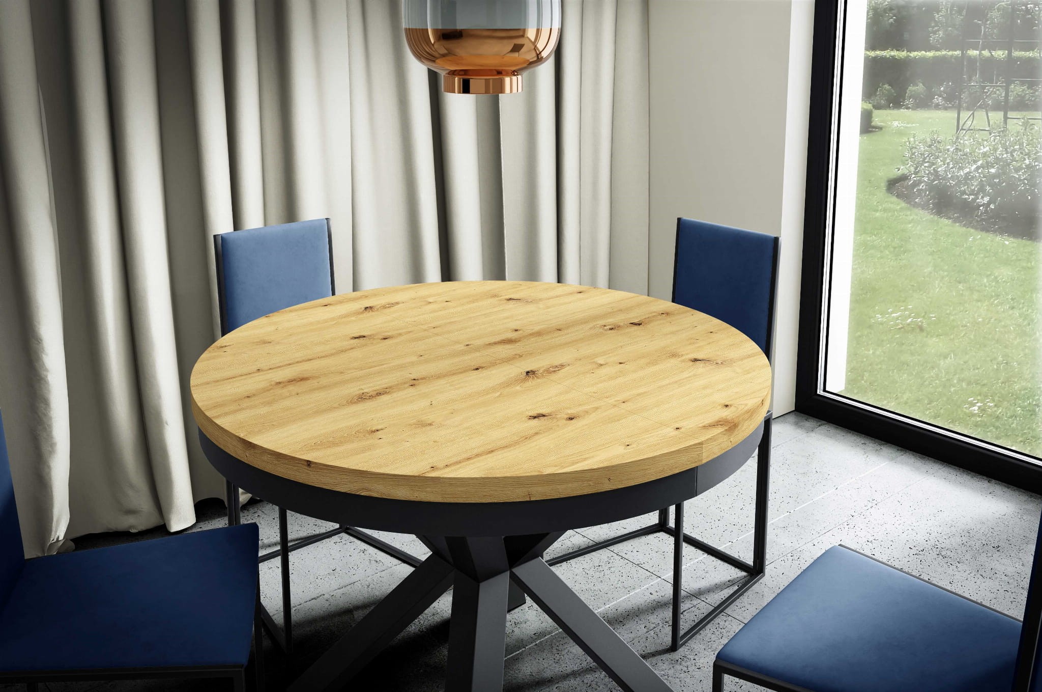 Stół NARWIK 100 - 176 Okrągły Rozkładany Blat Czarny Molet Nogi Czarne Loft