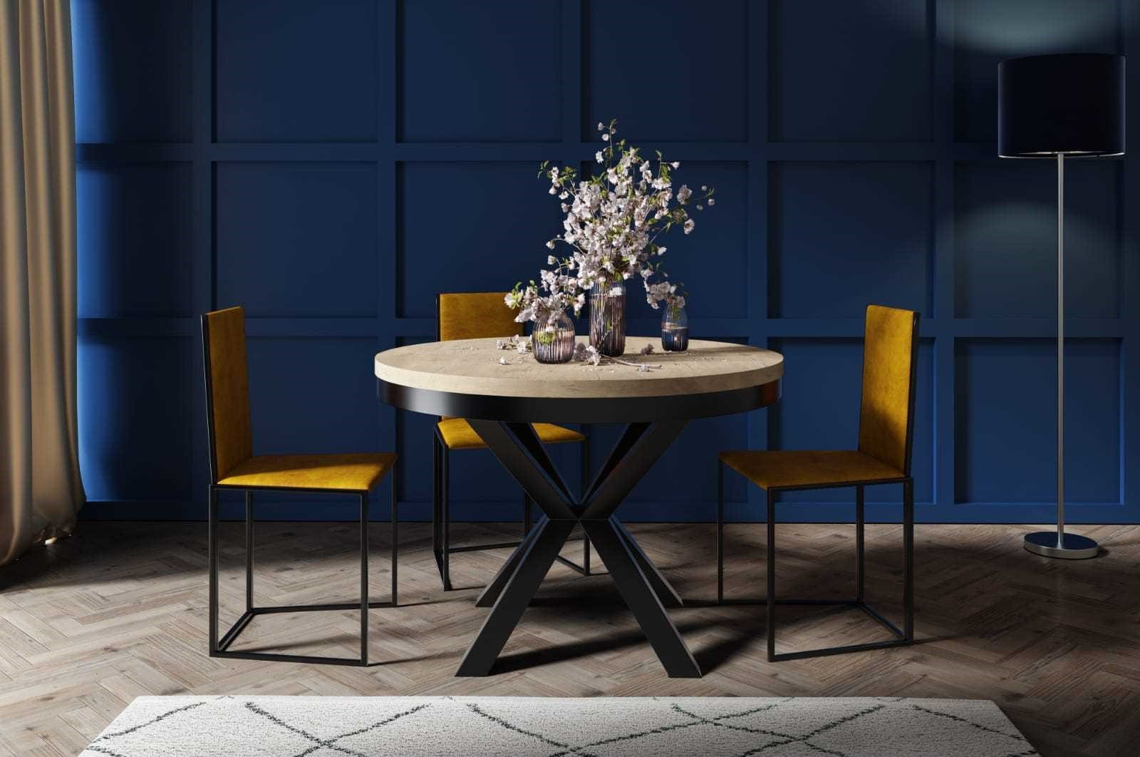 Stół NARWIK 100 - 176 Okrągły Rozkładany Blat Dąb Craft Złoty Nogi Czarne Loft