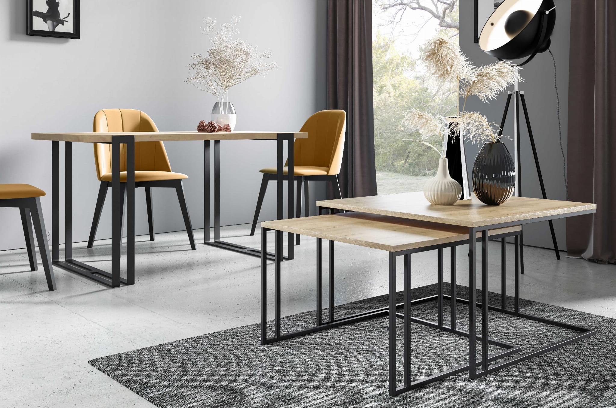 Zestaw składa się z jednego dłuższego i drugiego mniejszego stolika. Takie połączenie świetnie ze sobą współgra oraz pozwala z łatwością na schowanie mniejszej ławy pod większą. Dzięki takiej kompozycji pozwalają stworzyć funkcjonalną przestrzeń służącą do spotkań z rodziną i relaksu.