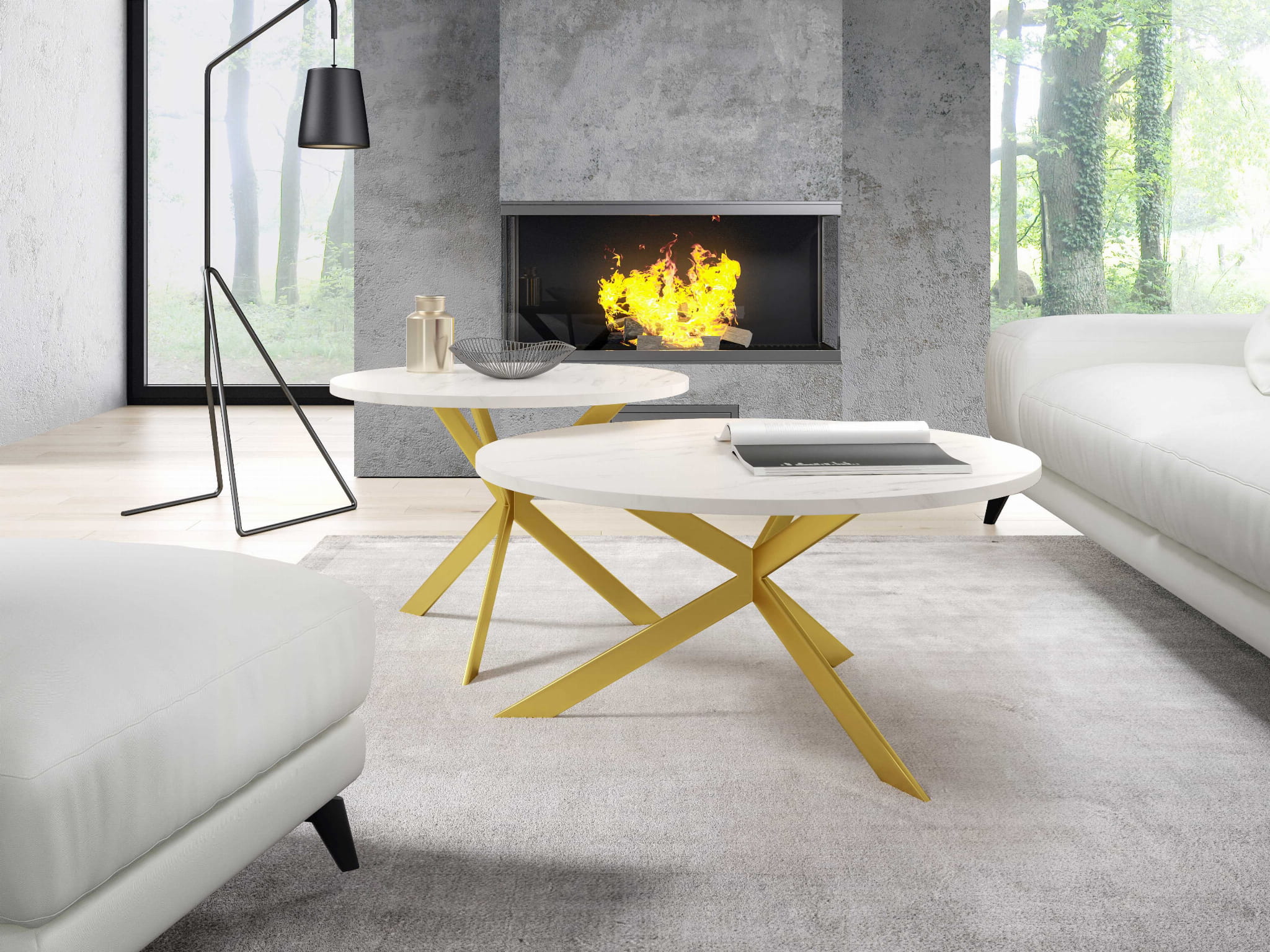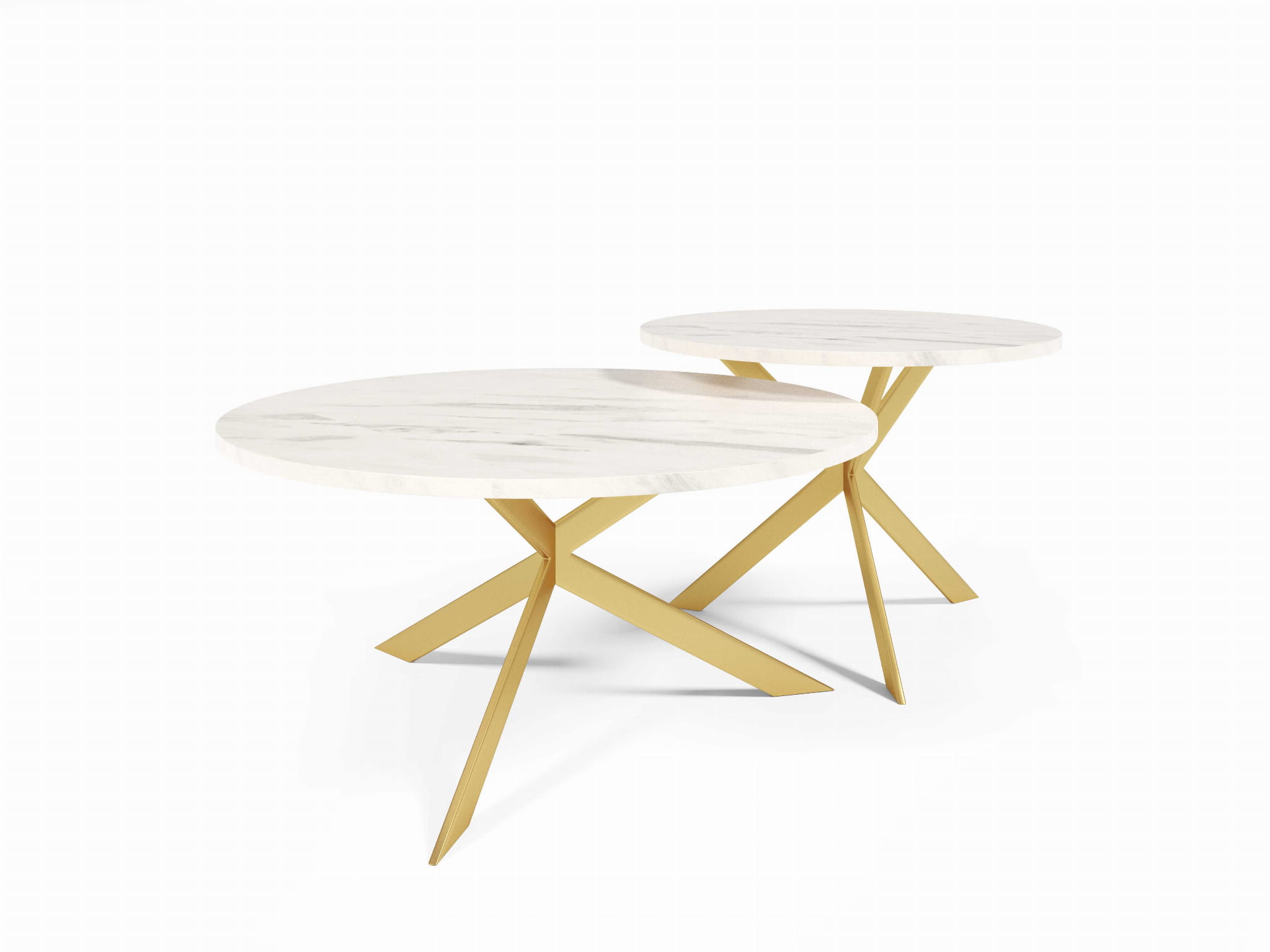 Stolik Kawowy LIBRE 75 cm + 58 cm Okrągły Blat Marmur Bianco Nogi Złote Loft