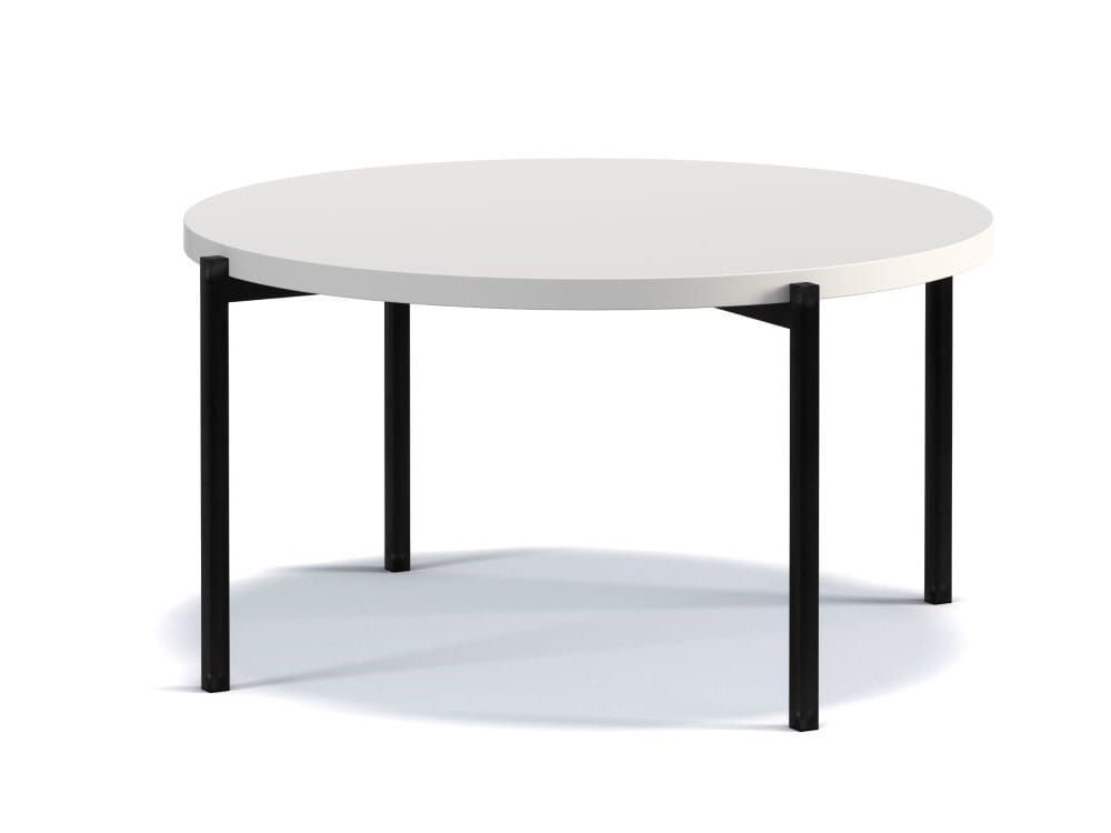 Stolik Kawowy SIGMA SM-01 Biały Mat Do Salonu Czarne Metalowe Nogi Okrągły