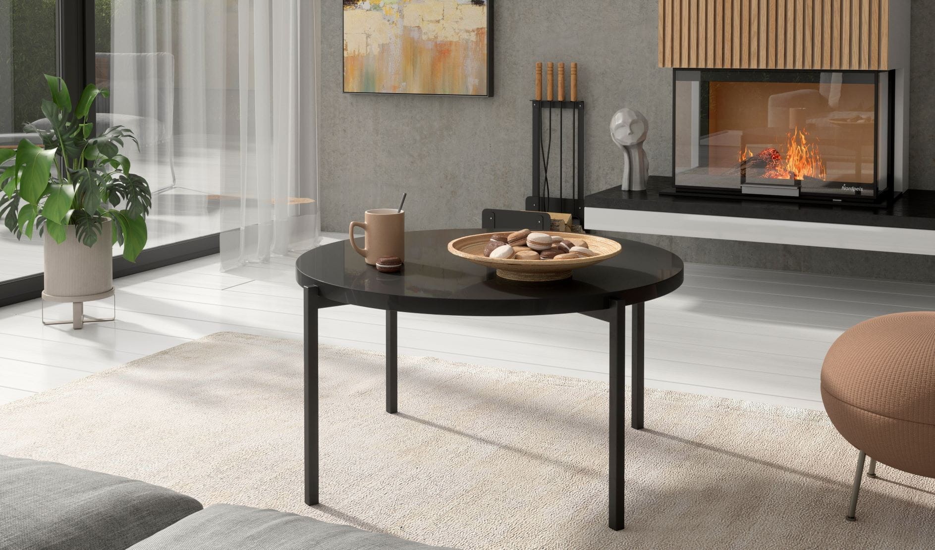 Stolik Kawowy SIGMA SM-01 Czarny POŁYSK Do Salonu Czarne Metalowe Nogi Okrągły