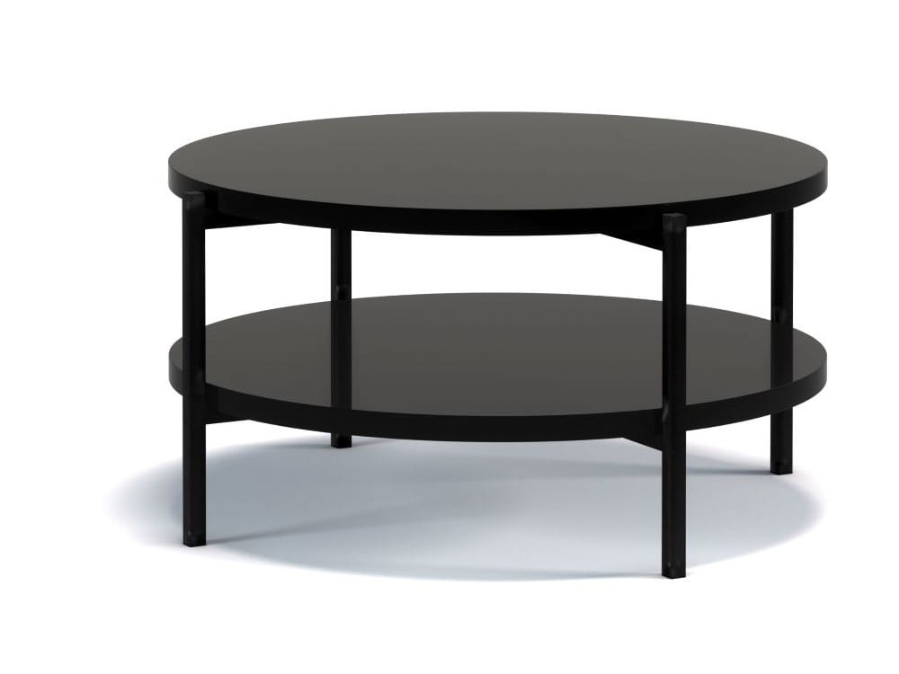 Stolik Kawowy SIGMA SM-02 Czarny POŁYSK Do Salonu Czarne Metalowe Nogi Okrągły Półka