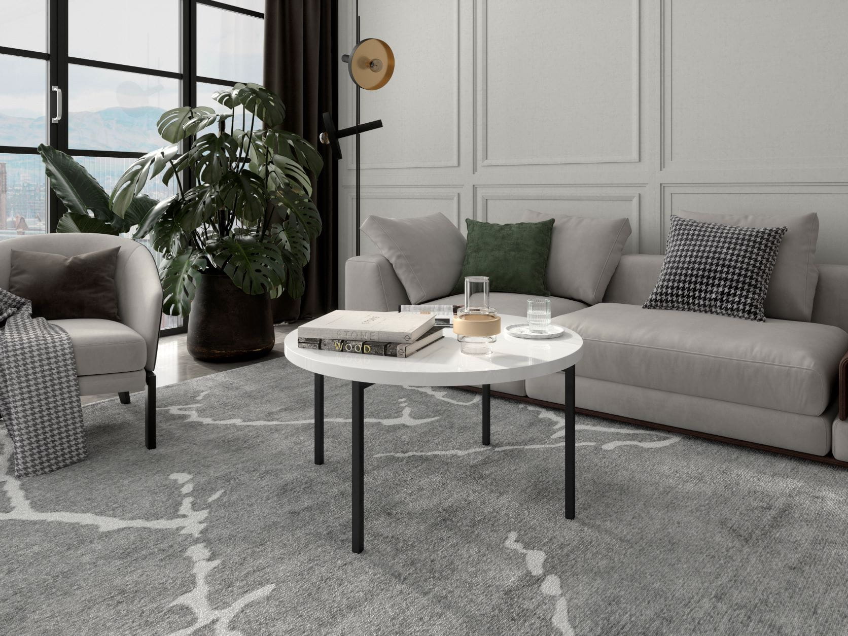 Stolik Kawowy SIGMA SM-03 Biały Połysk Do Salonu Czarne Metalowe Nogi Okrągły