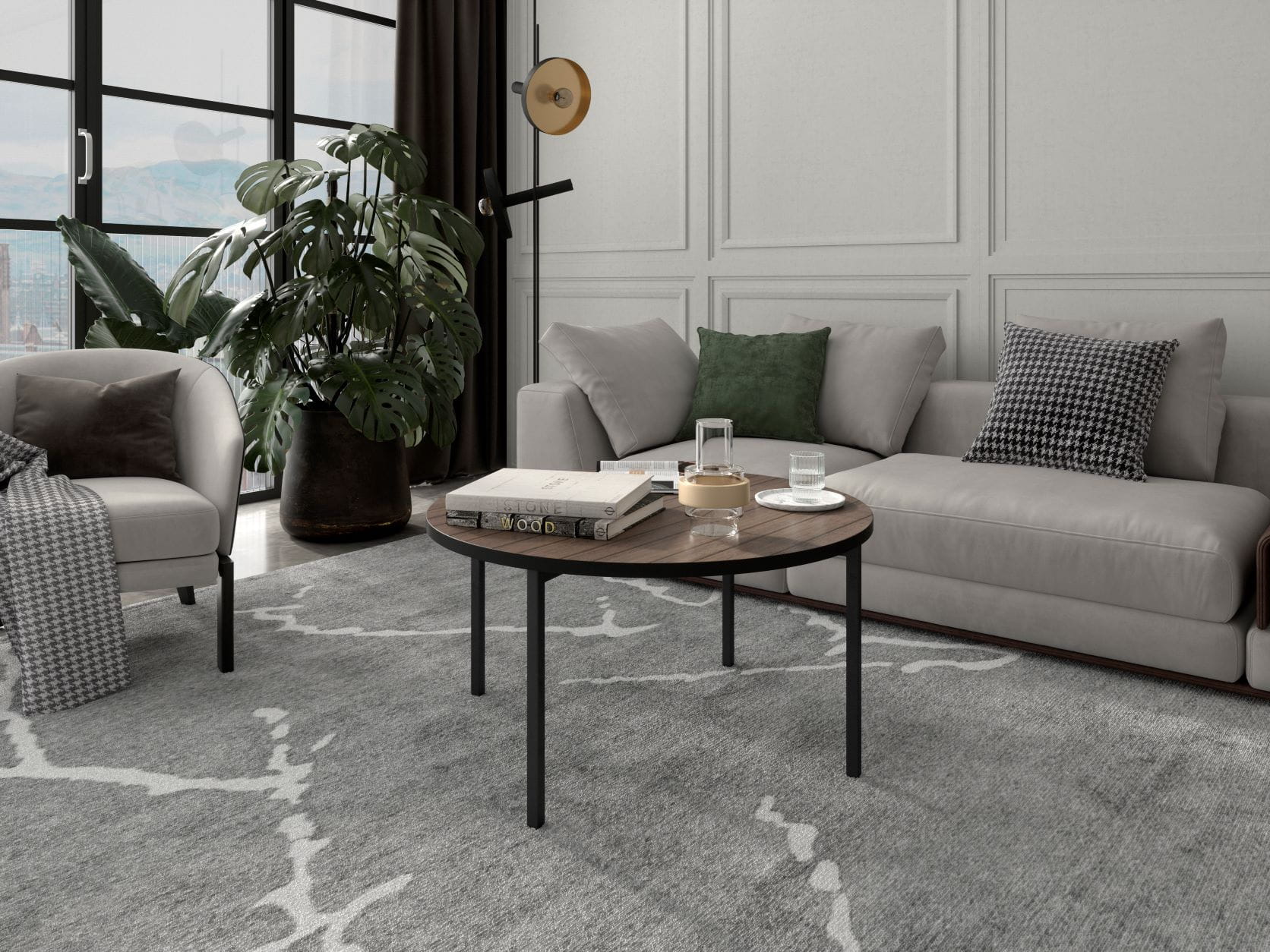 Stolik Kawowy SIGMA SM-03 Captains Deck Do Salonu Czarne Metalowe Nogi Okrągły