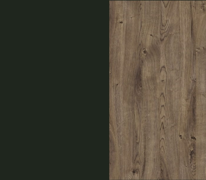 Meble dostępne są w kolorze butelkowej zieleni w połączeniu z dębem Lefkas oraz białego abisco ash z dąb Lefkas
