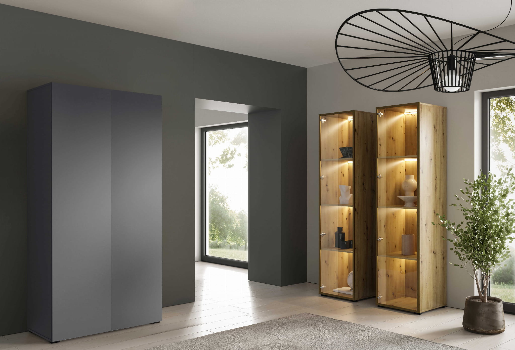 Szafa modułowa ALEX to doskonałe rozwiązanie dla pomieszczeń każdego typu dzięki możliwości dowolnego ustawienia modułów szafy w zależności od indywidualnych potrzeb.