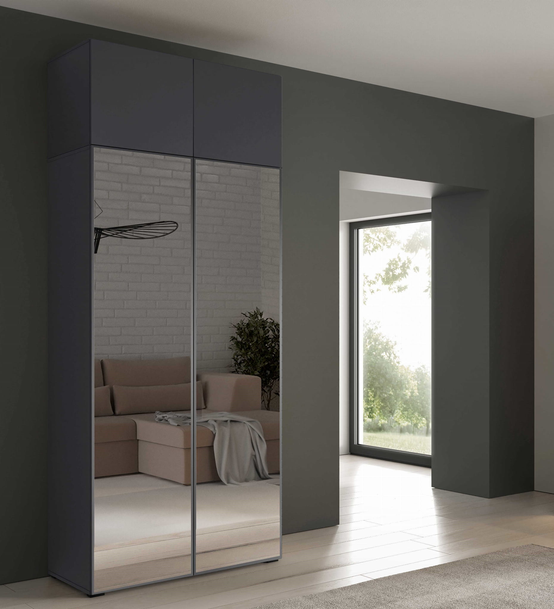 Szafa ALEX Szerokość 100 cm Front Gładki Antracyt + Lustra Korpus Antracyt Nowoczesna Modułowa OL100 FL