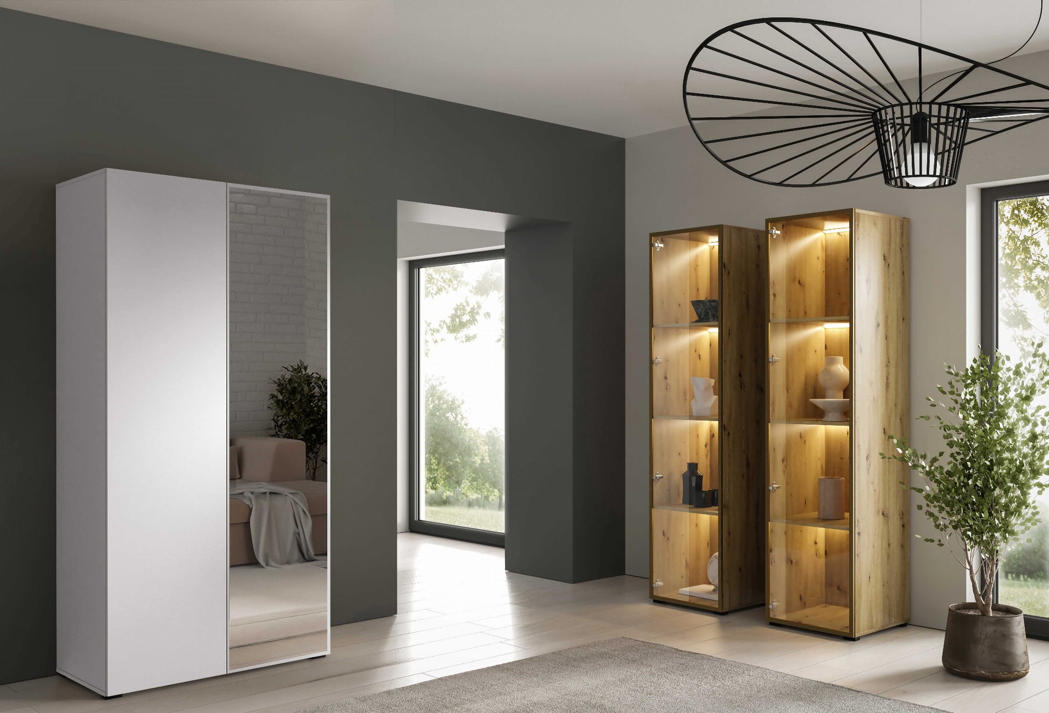 Świetnie sprawdzi się w domowej garderobie z wygodnymi przeszklonymi frontami, które jednocześnie zapewnią komfort użytkowania oraz dodadzą estetyki wnętrzu Twojej garderoby. Wybór szafy ALEX nada elegancji wnętrzu w salonie, przedpokoju lub sypialni. Sam decydujesz do czego wykorzystasz nasz produkt, który stanie się nieodzownym elementem dekoracji Twojego domu.