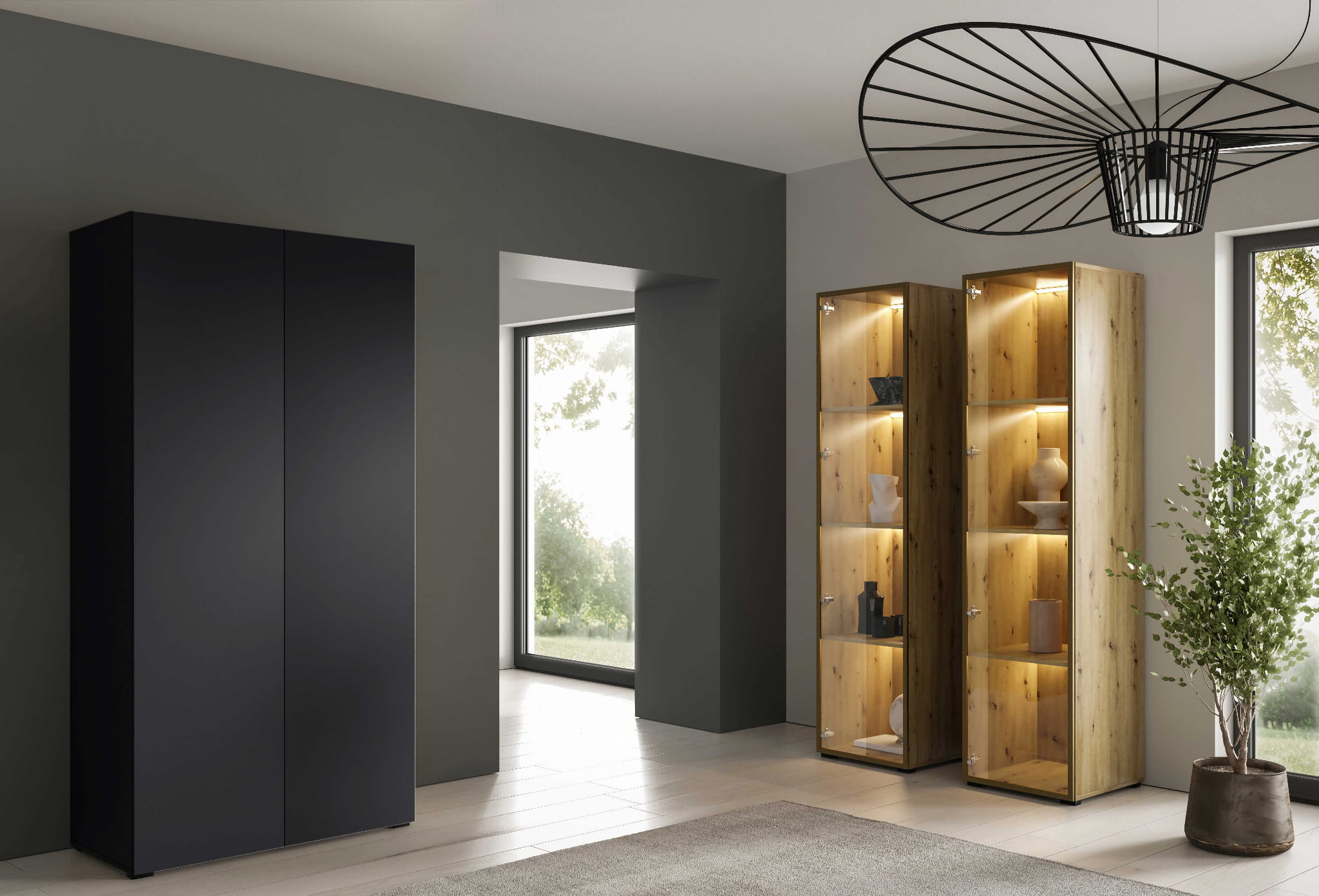 Szafa modułowa ALEX to doskonałe rozwiązanie dla pomieszczeń każdego typu dzięki możliwości dowolnego ustawienia modułów szafy w zależności od indywidualnych potrzeb.