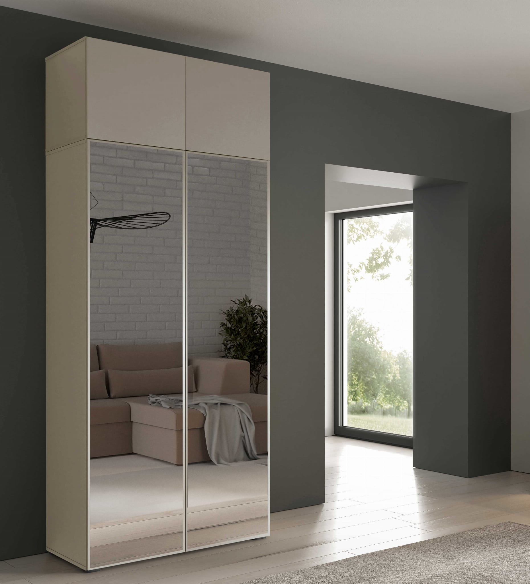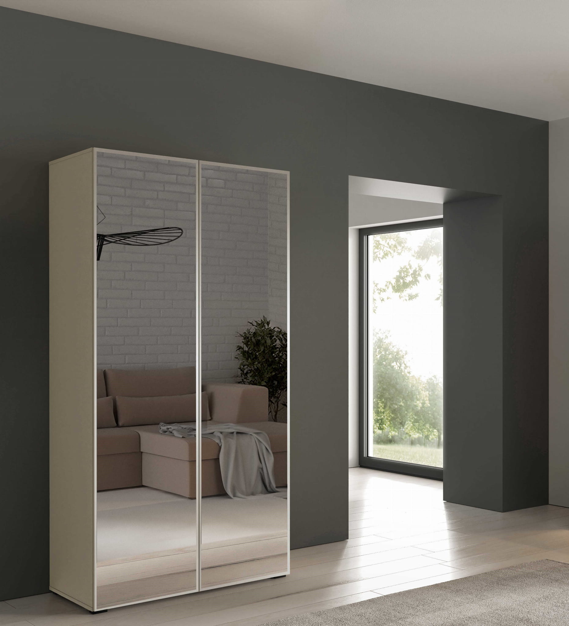 Szafa ALEX Szerokość 100 cm Front Gładki Kaszmir + Lustra Korpus Kaszmir Nowoczesna Modułowa OL100 FL