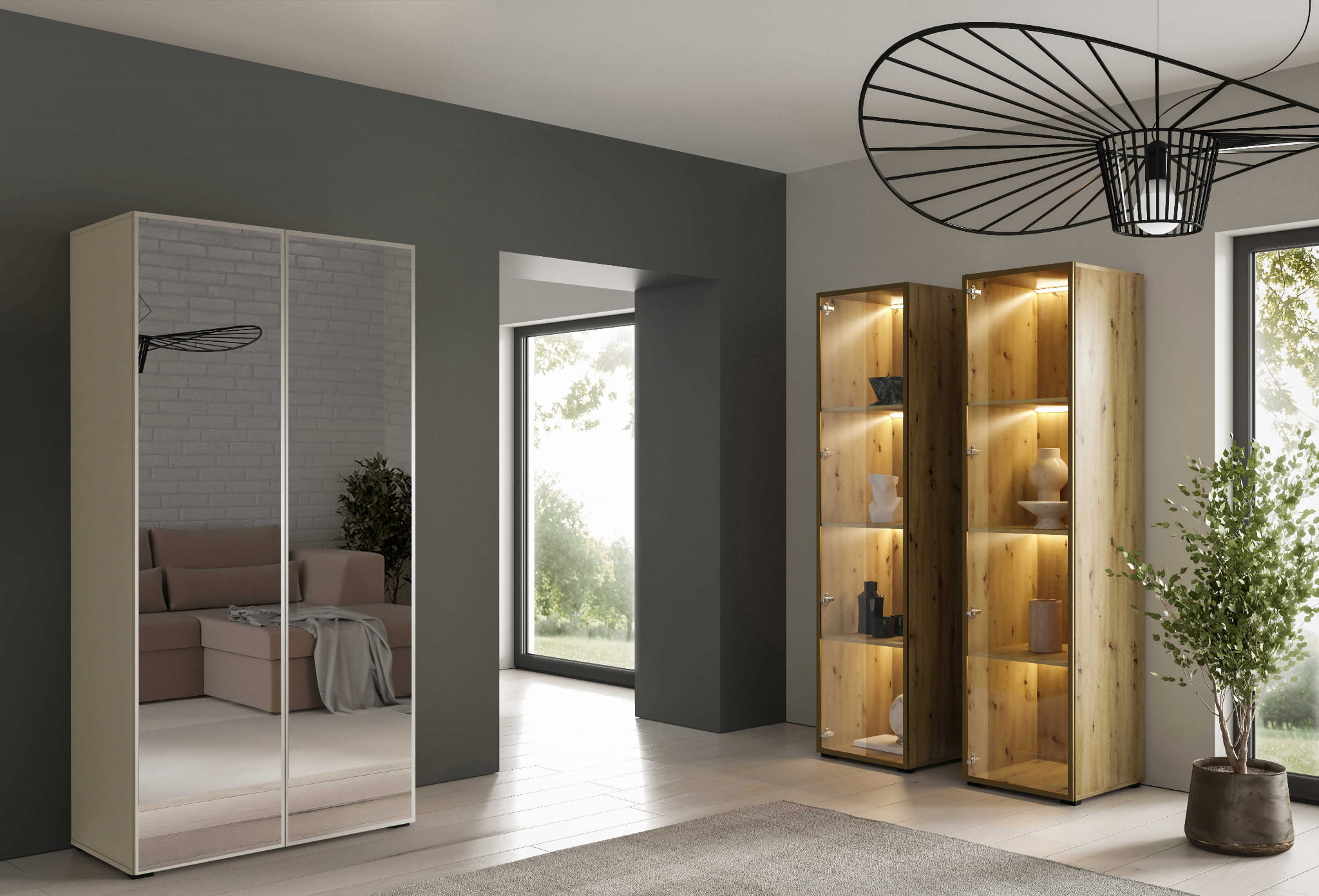 Świetnie sprawdzi się w domowej garderobie z wygodnymi przeszklonymi frontami, które jednocześnie zapewnią komfort użytkowania oraz dodadzą estetyki wnętrzu Twojej garderoby. Wybór szafy ALEX nada elegancji wnętrzu w salonie, przedpokoju lub sypialni. Sam decydujesz do czego wykorzystasz nasz produkt, który stanie się nieodzownym elementem dekoracji Twojego domu.