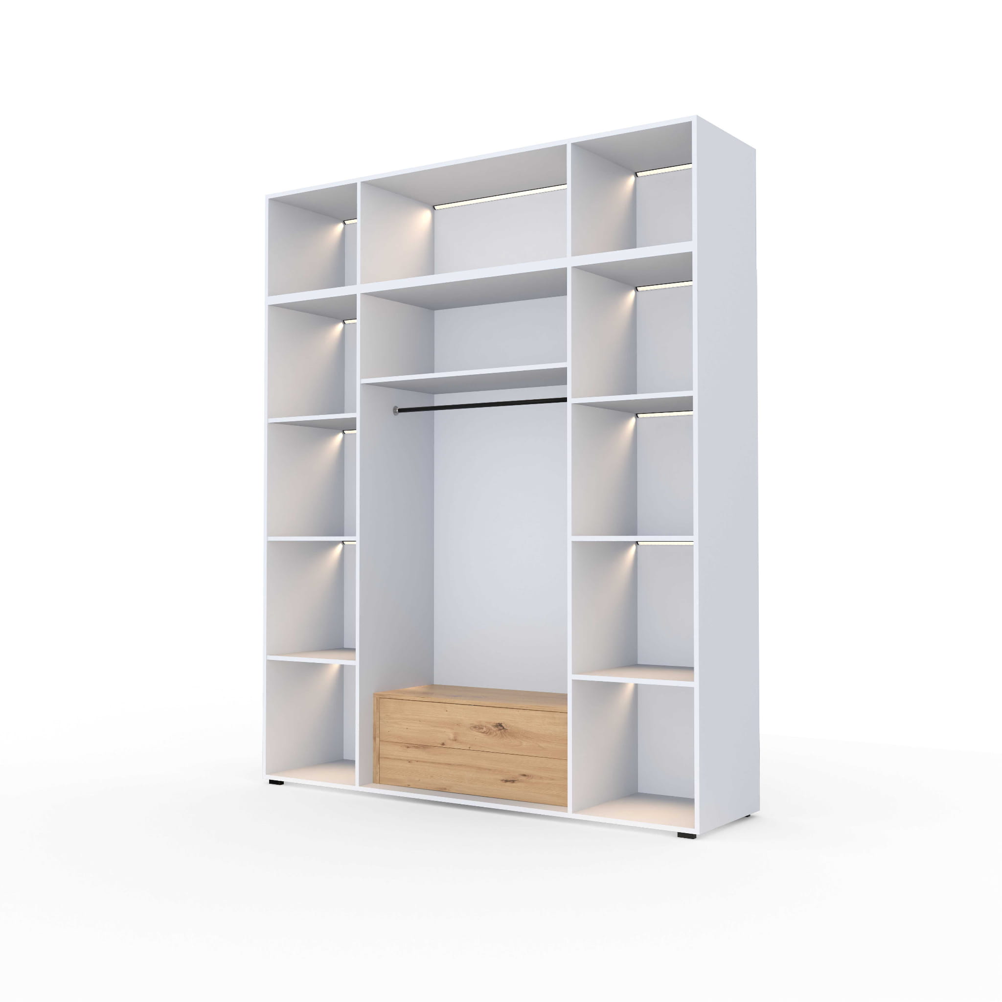 Dobieraj dodatki według własnego niepowtarzalnego gustu i stwórz szafę na miarę Swoich własnych potrzeb z naszym systemem modułowym szafy ALEX wraz z opcjonalnymi dodatkami.