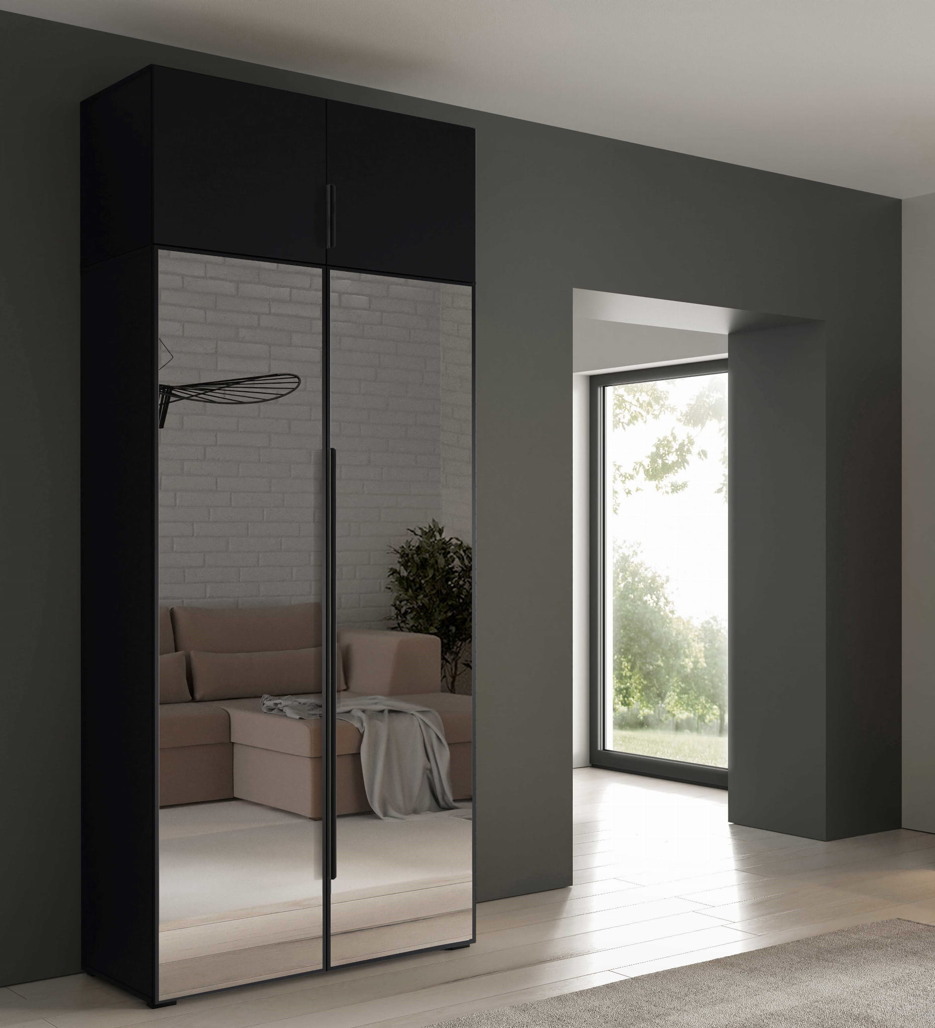Szafa ALEX z Nadstawką Uchwytami Szerokość 100 cm Front Gładki Biały Mat + Lustra Korpus Biały Mat Nowoczesna Modułowa OL100 FL + N100 G