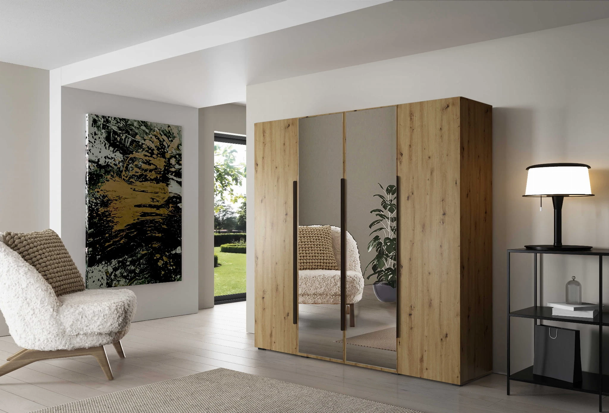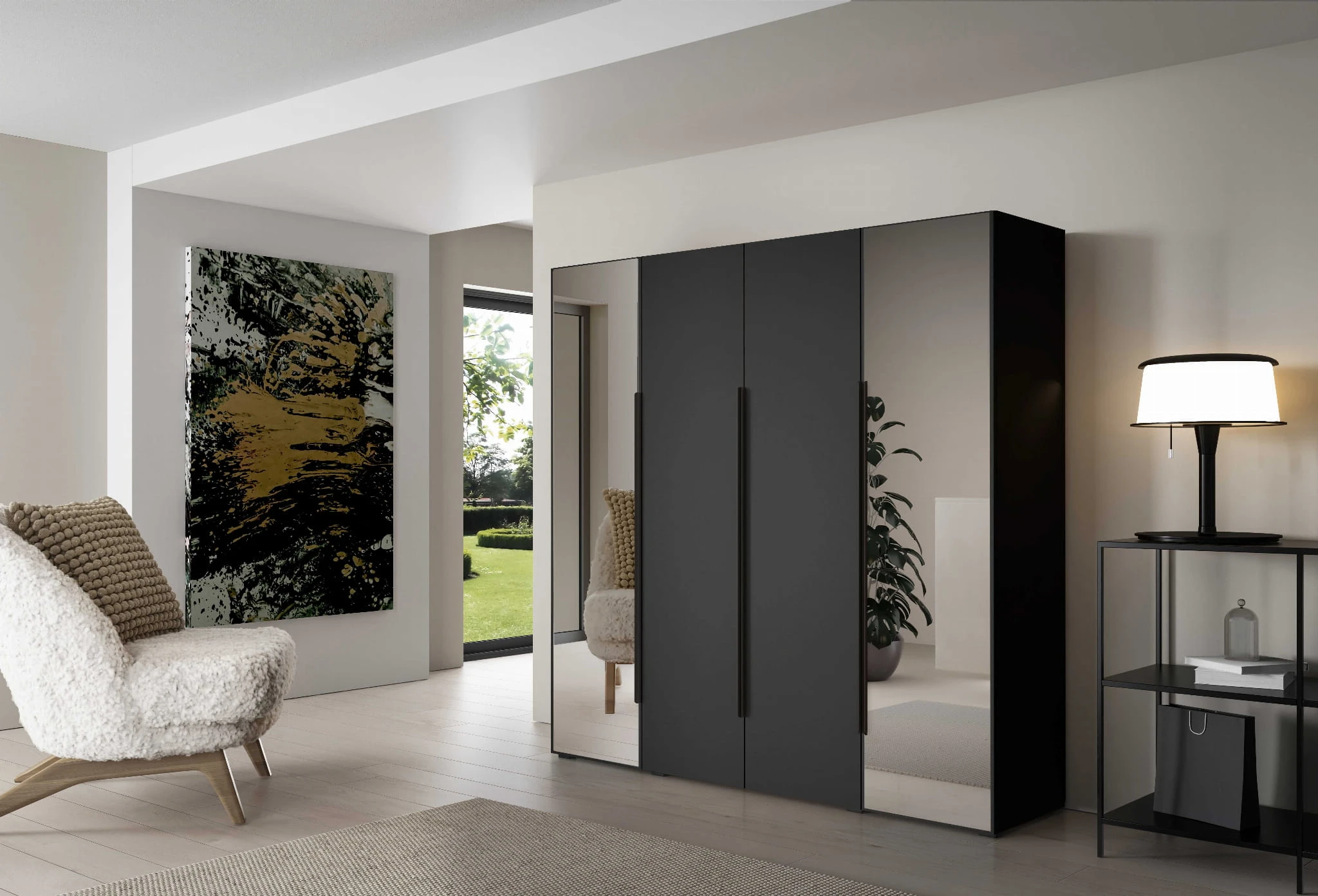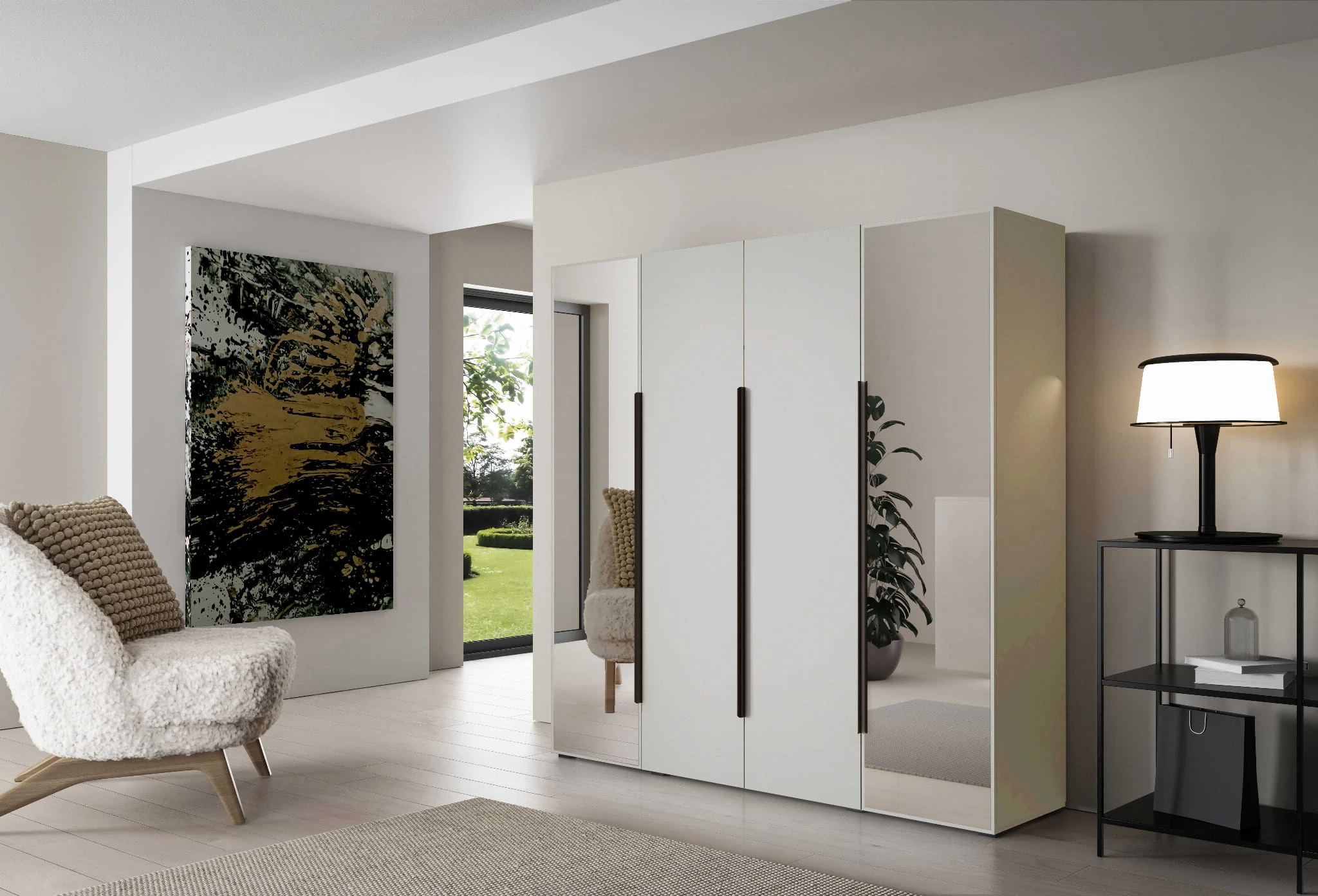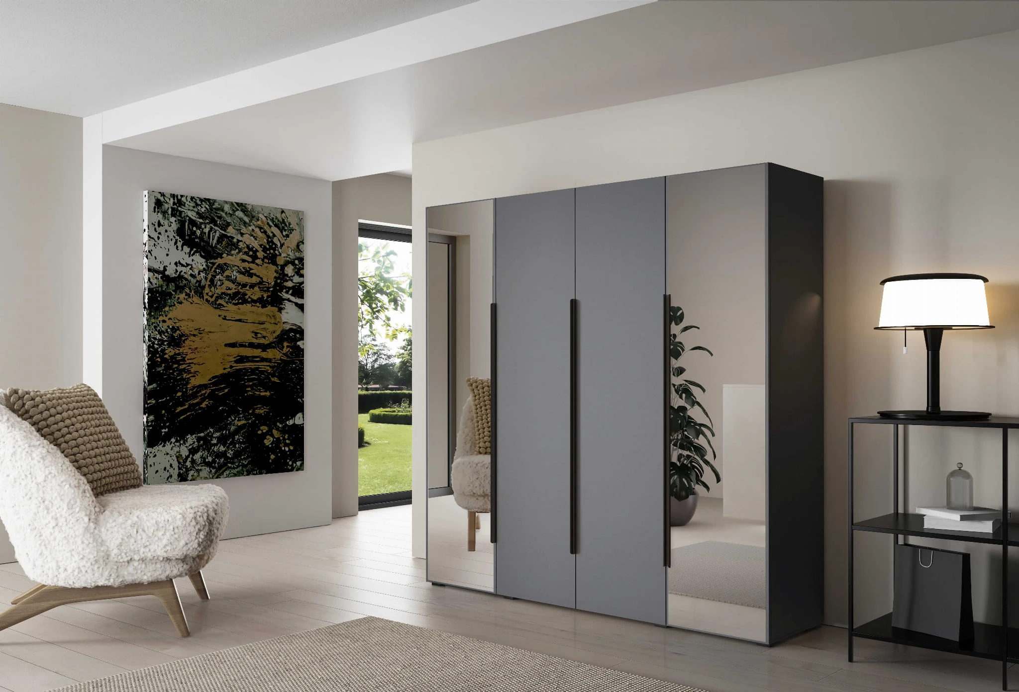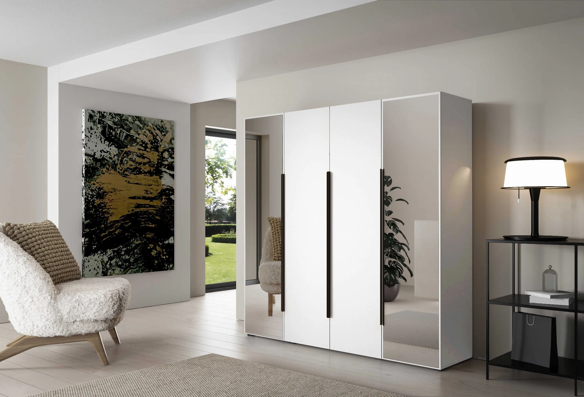 - Układ luster (lustra po bokach lub na środku frontu szafy)