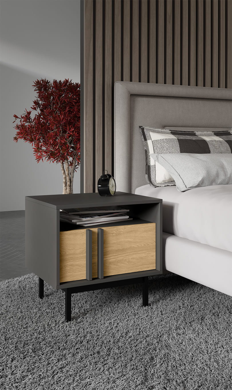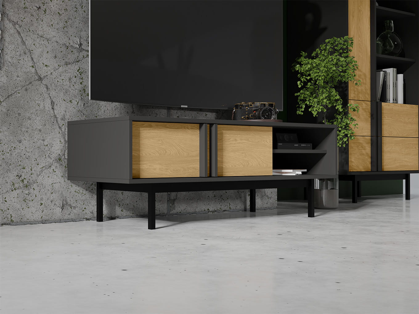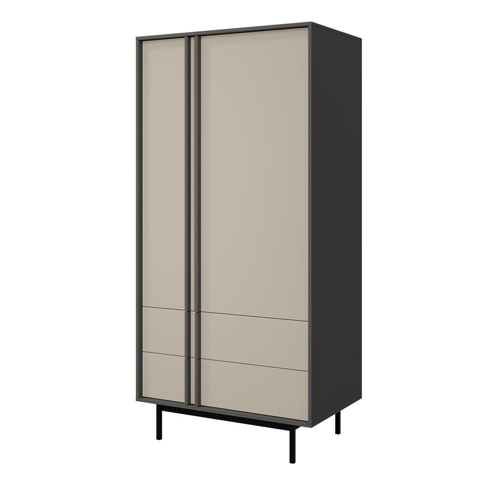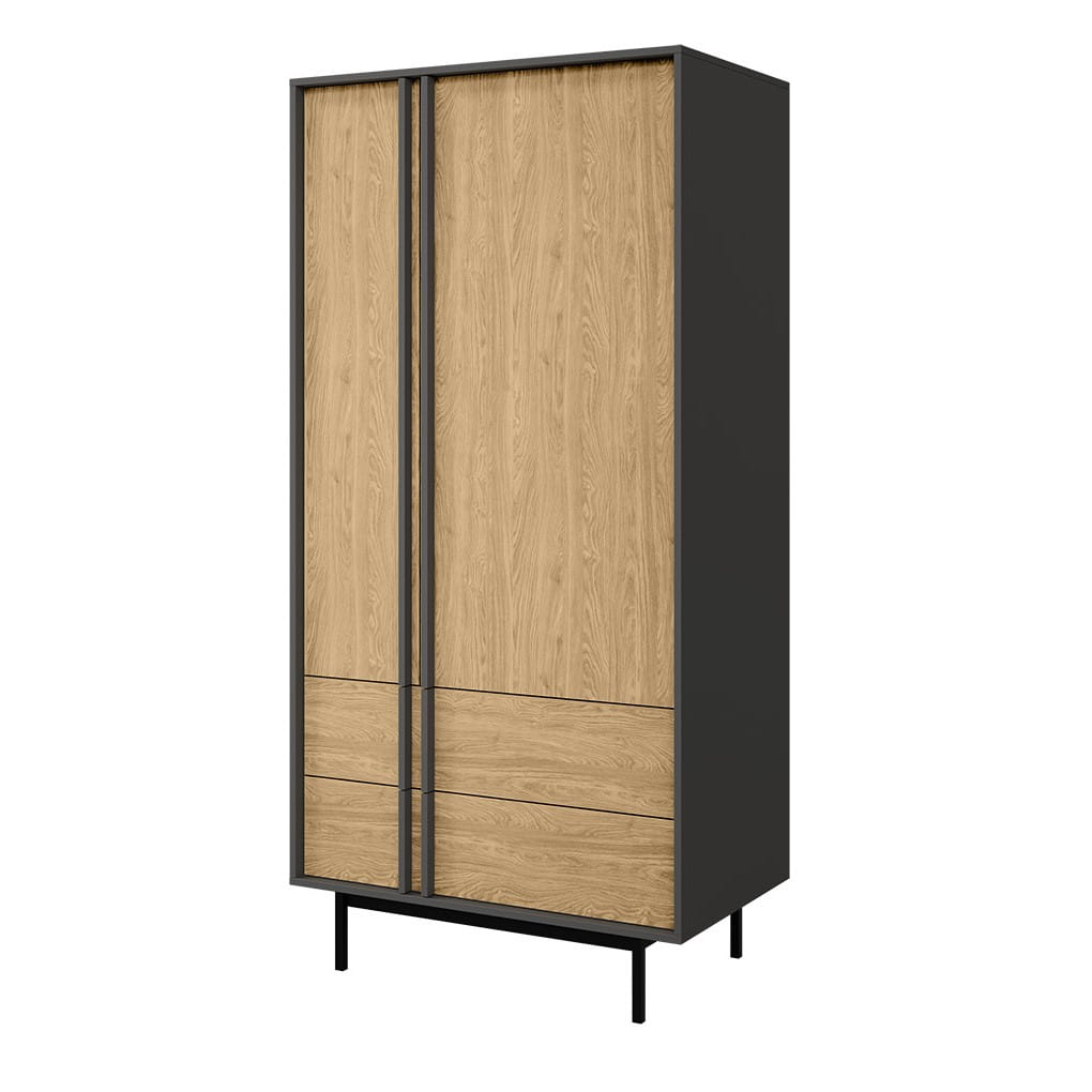 Szafa ALSY 1 Szerokość 93 cm Antracyt / Dąb Olejowany Dwudrzwiowa 2-Szuflady Nowoczesna Do Salonu