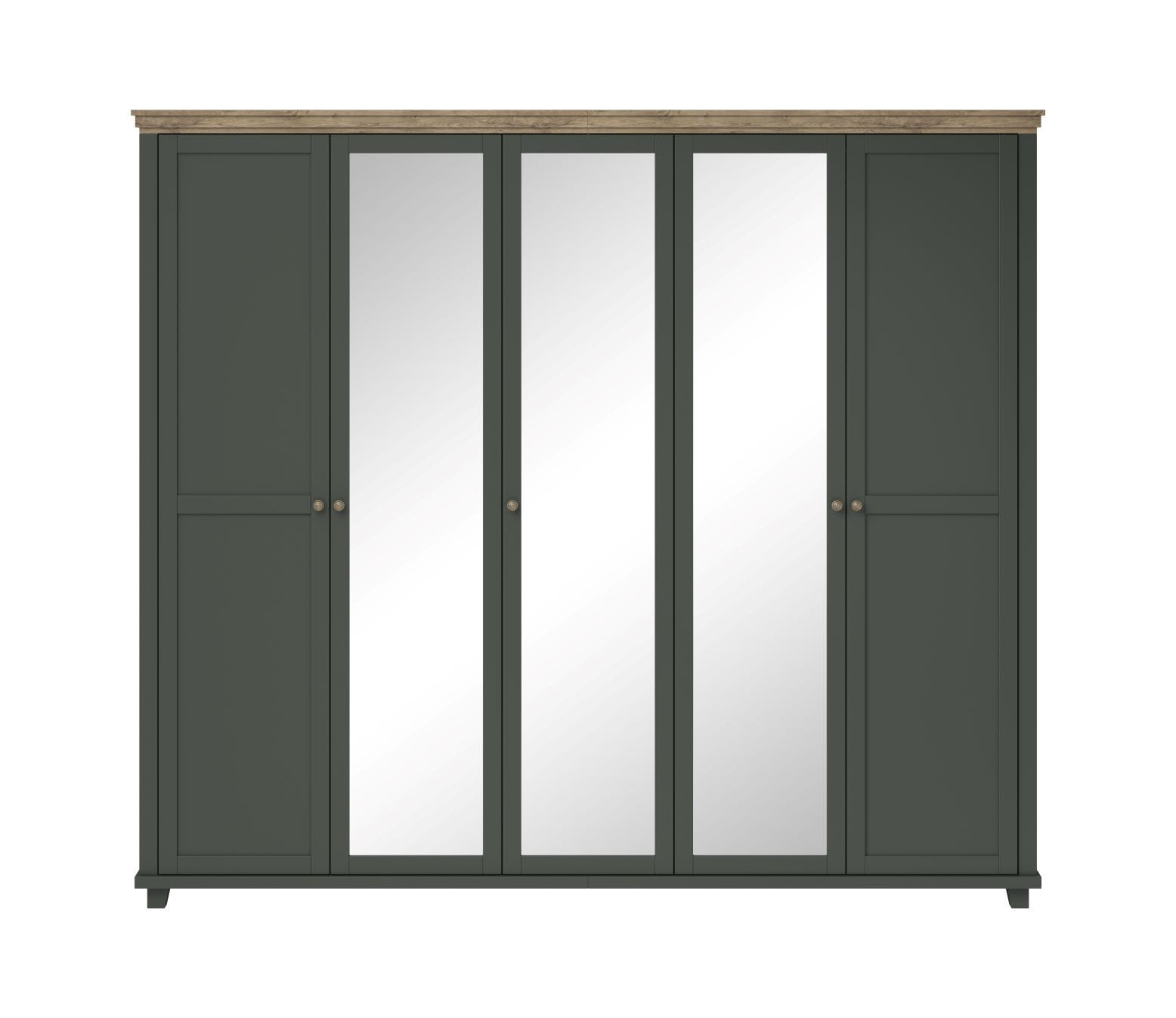 Szafa EVORA Szerokość 246 cm Pięciodrzwiowa z Lustrem Butelkowa zieleń Helvetia 24ZRJU21