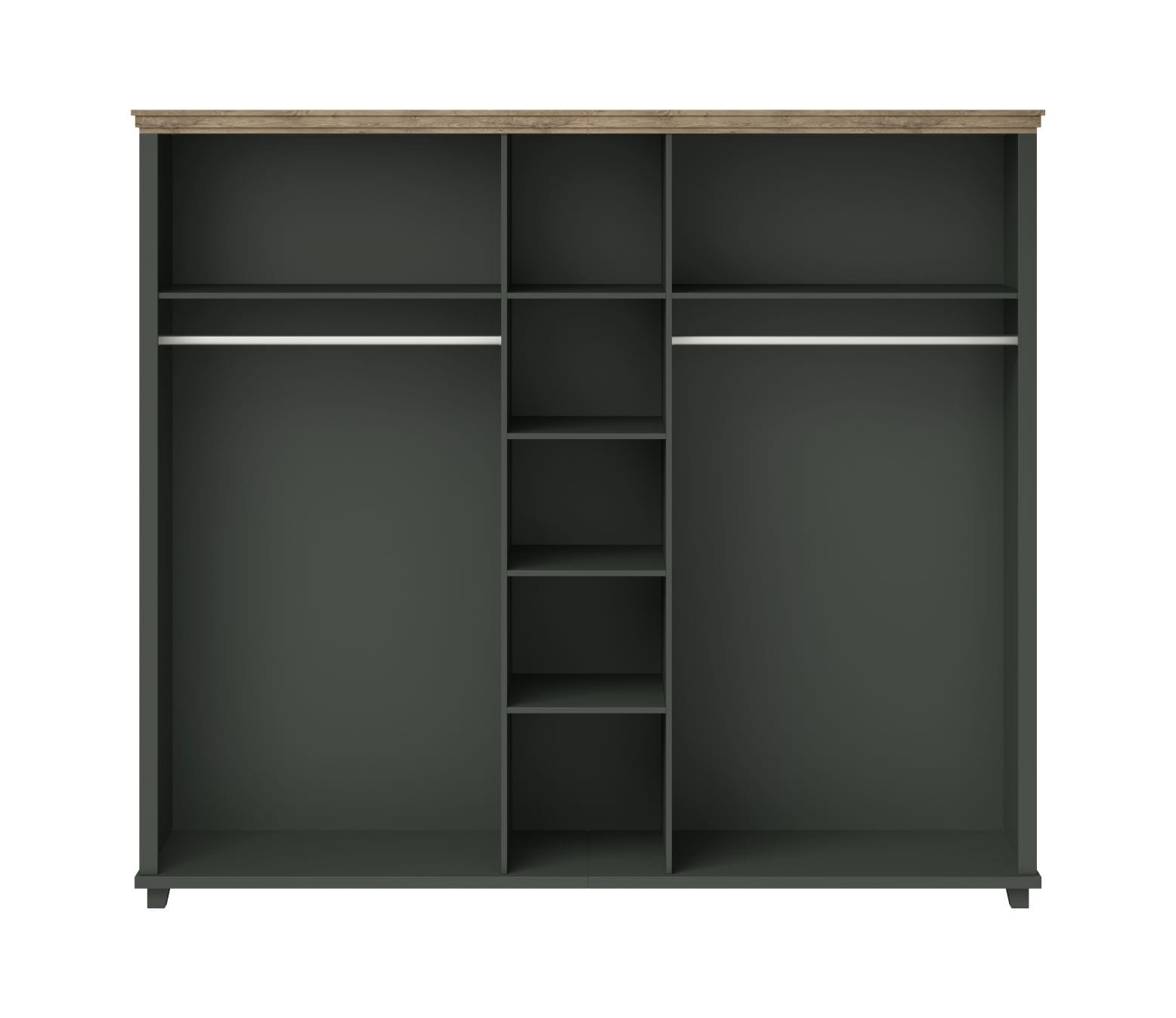 Górny wieniec szafy wykończony w kolorze dąb lefkas ciemny.