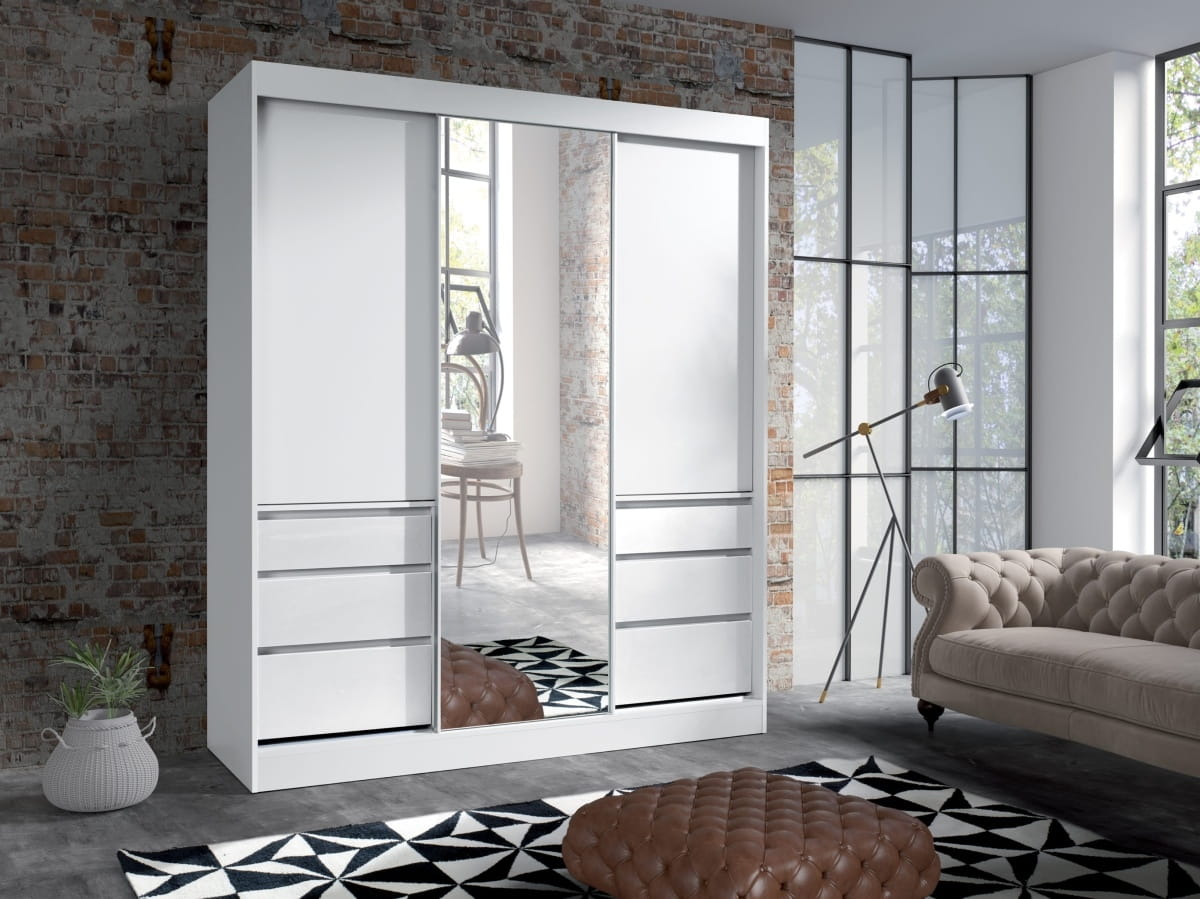Szafa HAITI 180 Z Drążkiem Półkami Przesuwna Lustro Biały