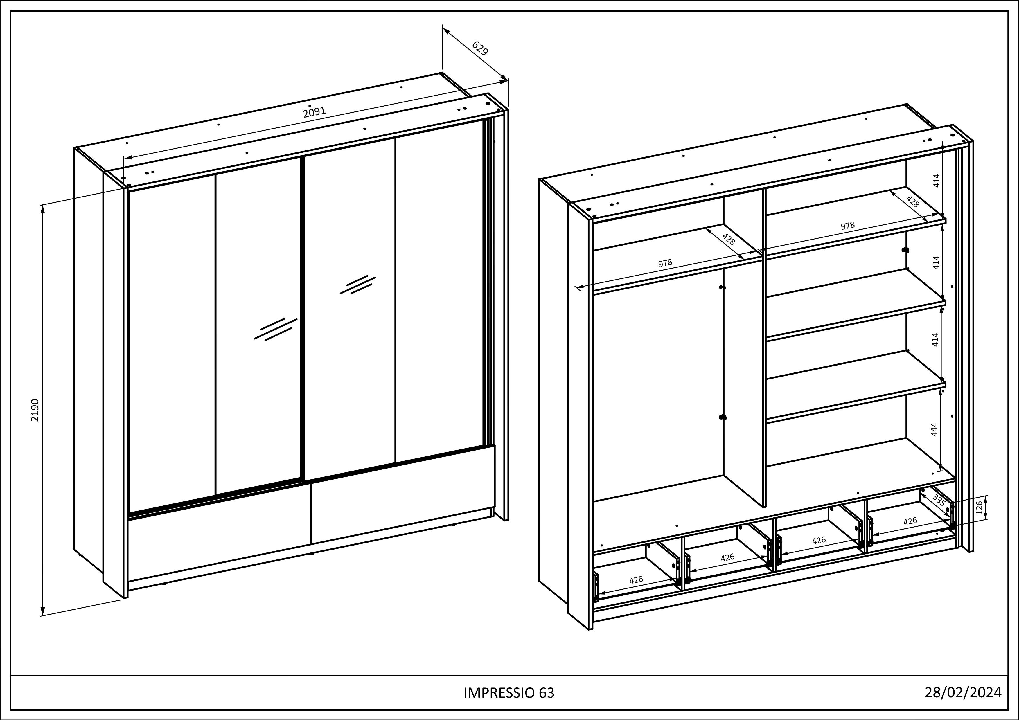 Szafa IMPRESSIO Szerokość 210 cm Dąb Mauvella / Congo Przesuwna Dwudrzwiowa 2-Szuflady Do Sypialni Helvetia Meble 24MCNJ63